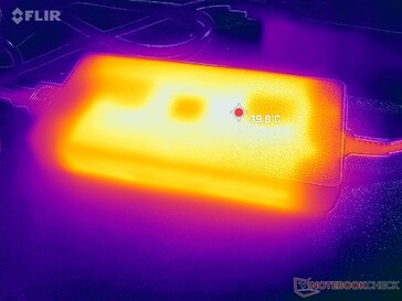 Vi kan registrera ett maximalt uttag på 243 W från den stora (~19,9 x 10 x 2,5 cm) 240 W AC-adaptern när CPU:n och GPU:n är 100 procent utnyttjade vardera. Förbrukningen skulle cykla mellan 180 W och 240 W när under sådana förhållanden sannolikt på grund av termiska begränsningar.