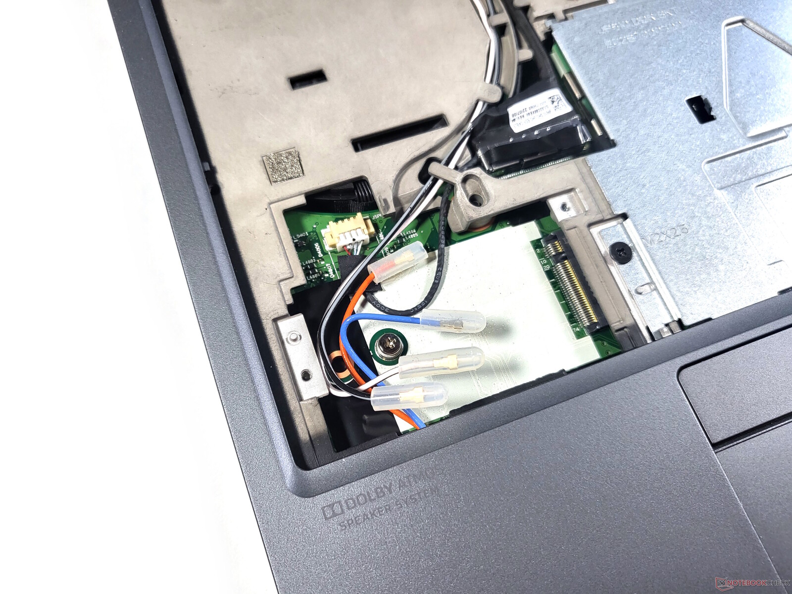 Lenovo har gjort det mycket enkelt att komma åt två av de fyra RAM-platserna, eftersom endast det lilla locket på enhetens undersida måste tas bort. Här finns också en ledig M.2 2280-plats. Det är något svårare att komma åt de andra RAM-platserna, den andra M.2-platsen, den lödda WiFi-modulen samt WWAN-platsen: tangentbordet måste ge plats för detta. Det sista hindret presenterar sig i form av två metallskydd. Totalt finns ytterligare tio extra korsskruvar som säkras med plastkrokar på den bärbara datorns undersida. När du tar bort den här delen får du fri sikt på det stora kylsystemet med totalt två fläktar och det interna batteriet.