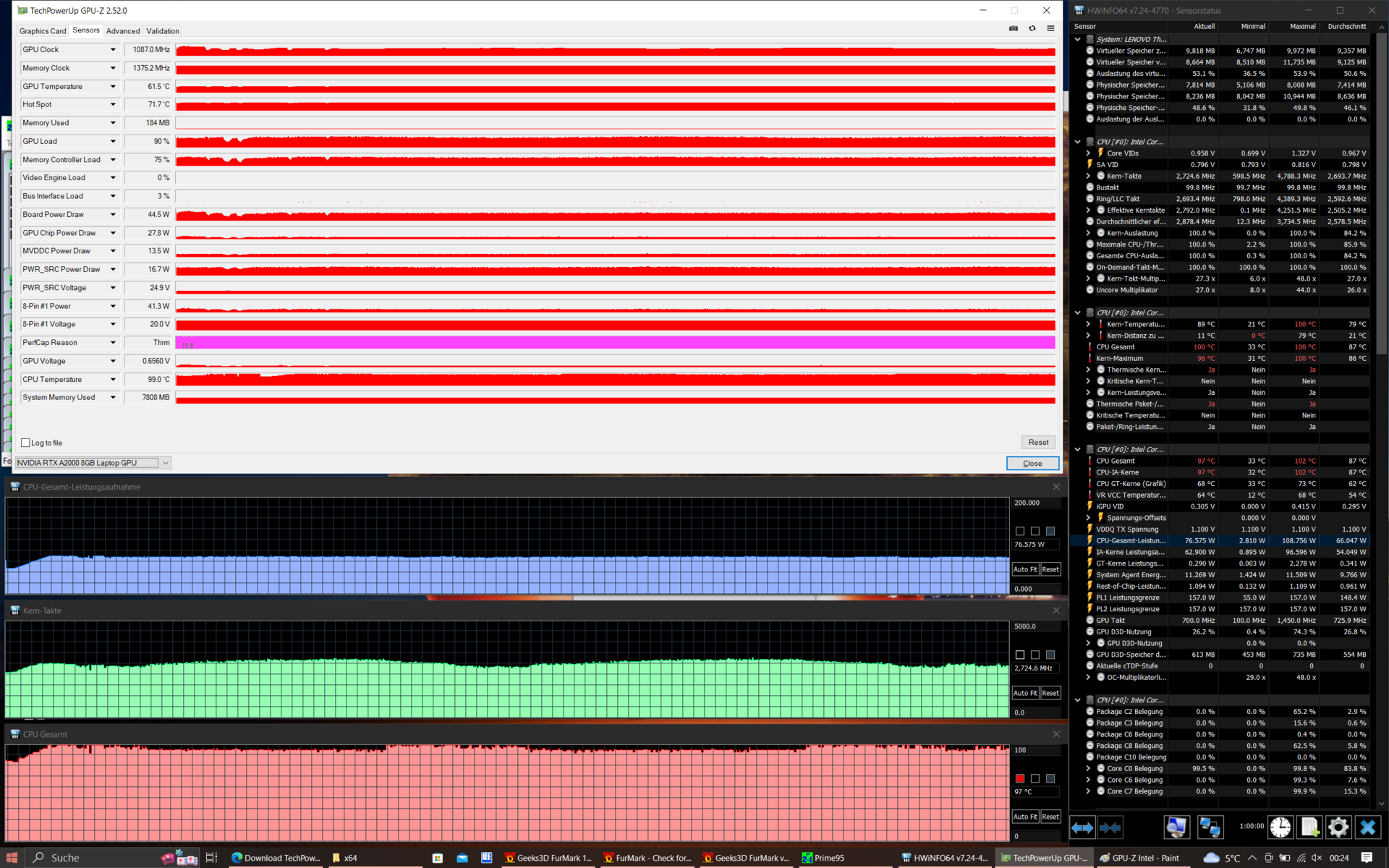 Även om processorn inte drogs ned under stresstestet sjönk GPU-prestandan: Efter en timme kan den bara förbruka 45 watt i stället för 60.