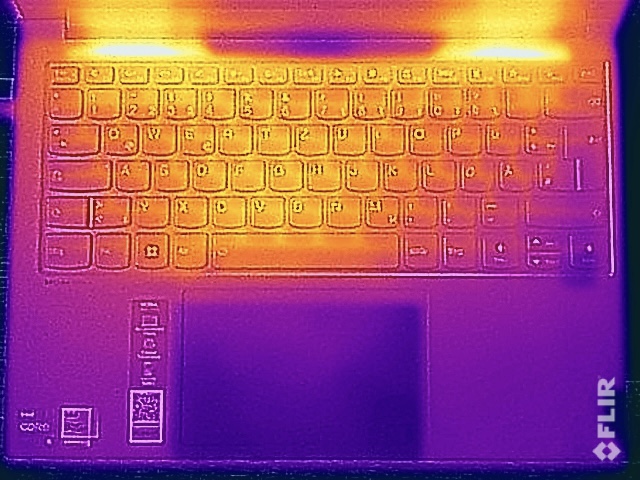 Processorn har, som beskrivits ovan, mer än hyggliga prestanda för en subnotebook. Detta blir dock märkbart i temperaturerna, även om enheten är mer återhållsam här än AMD-versionen. Under belastning värms undersidan upp till nästan 53 °C, vilket definitivt talar för en plats på bordet och inte i knät. Ovansidan förblir mycket svalare på cirka 42 °C, så enheten kan fortfarande användas under belastning utan att bränna fingrarna. Som väntat förblir den behagligt sval i tomgångsläge