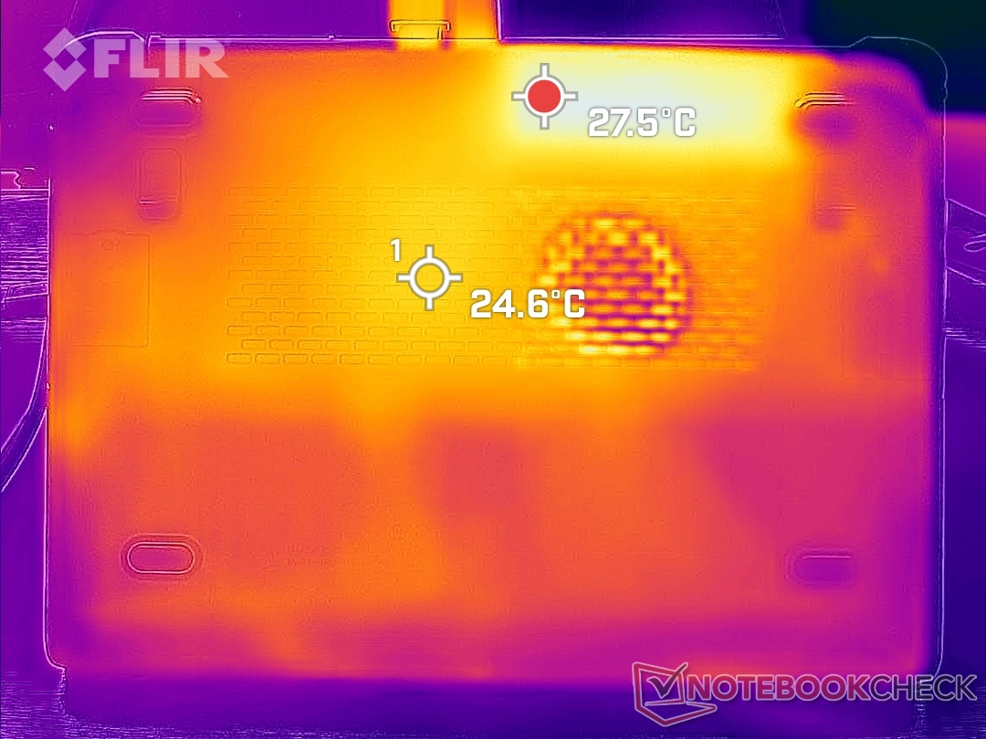 (+) Den maximala temperaturen på ovansidan är 28.6 °C / 83 F, jämfört med genomsnittet av 35.9 °C / 97 F , allt från 21.4 till 59 °C för klassen Subnotebook.