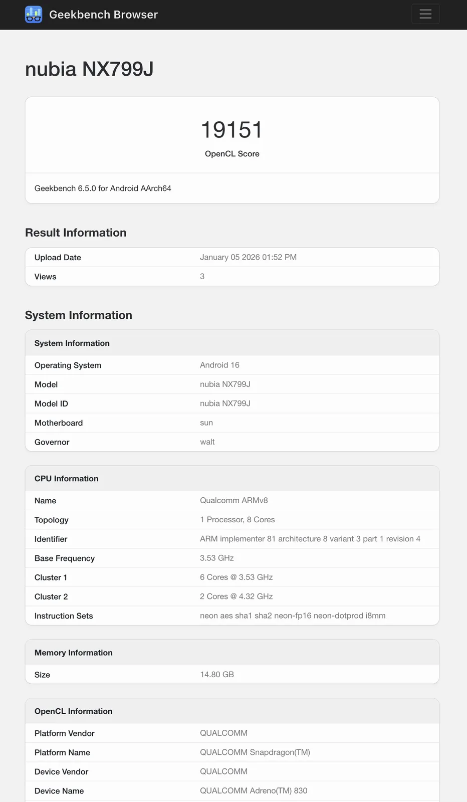 För sammanhangets skull kan nämnas att chipsetet har uppnått en median på 3 084 och 9 273 i Geekbench 6.5 med 3 228 och 10 401 maxvärden i single-core respektive multi-core benchmarks. Medan RedMagic 11 Air inte berör den senare, skulle dess flerkärniga poäng på 9,934 placera den inom topp 10 av Snapdragon 8 Elite-drivna enheter som vi har testat hittills. På samma sätt får en OpenCL-poäng på 19 151 RedMagic 11 Air nära ROG Phone 9 Pro men en bit bakom RedMagic 10S Pro.