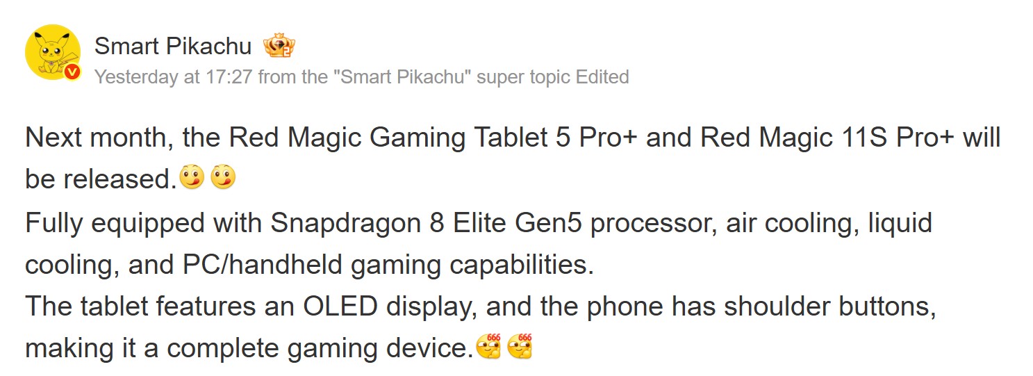 Det är också värt att notera att RedMagic 11S Pro+-serien förväntas introduceras tillsammans med surfplattan. Denna gaming-telefonlinje kan komma att ha en överklockad Snapdragon 8 Elite Gen 5 SoC.