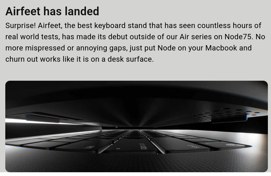 NuPhy Node75 kommer också att ha samma fötter som gör det möjligt att placera tangentbord som Air-serien ovanpå ett standard Apple MacBook-tangentbord utan att aktivera de inbyggda tangenterna på den bärbara datorn.