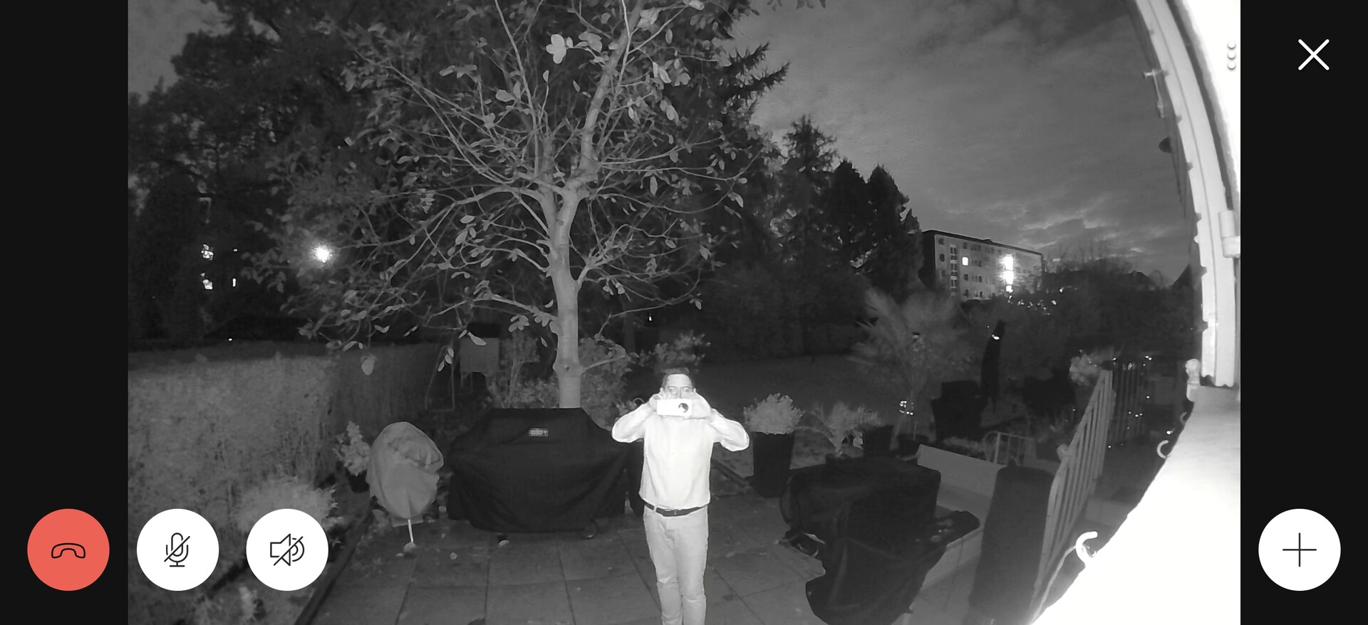 Push-meddelanden på smartphones eller surfplattor når användaren inom några sekunder. Du kan tala direkt via livevyn: ett tvåvägs ljudsystem med brusreducering möjliggör förståelig kommunikation. Den integrerade mikrofonen fångar upp röster tydligt, men gästerna bör inte befinna sig för långt bort från kameran, annars blir de svåra att förstå.