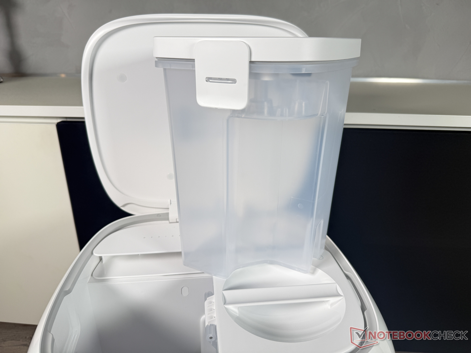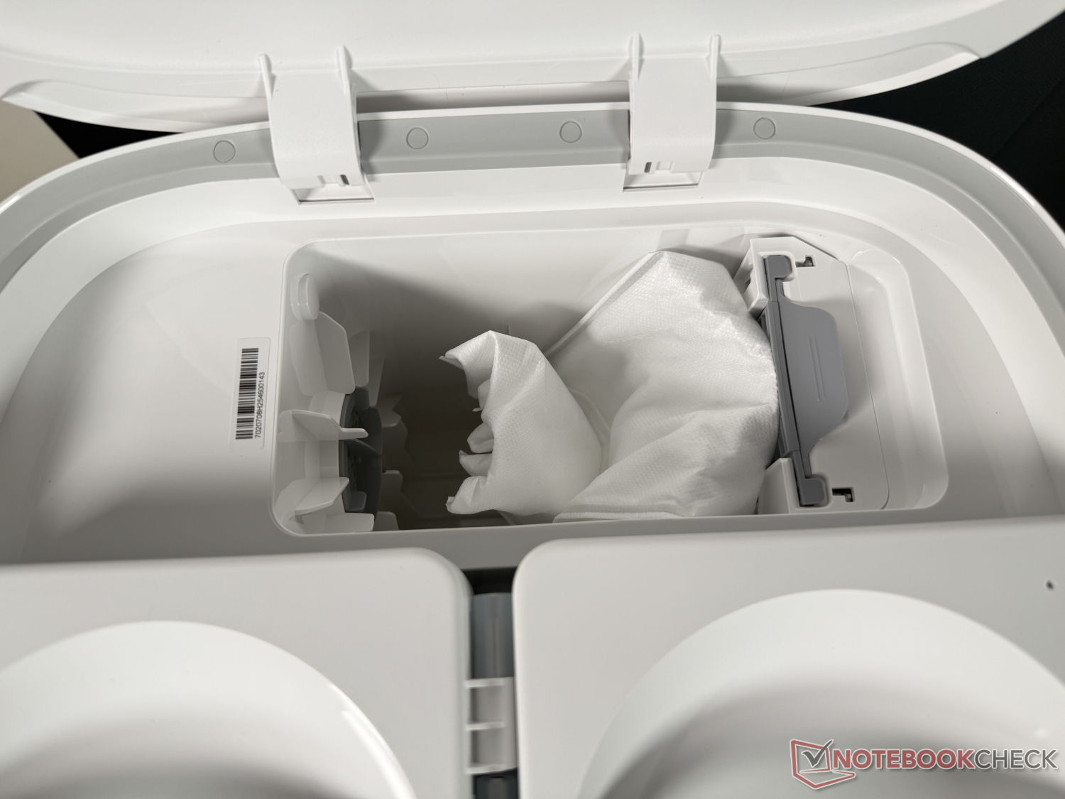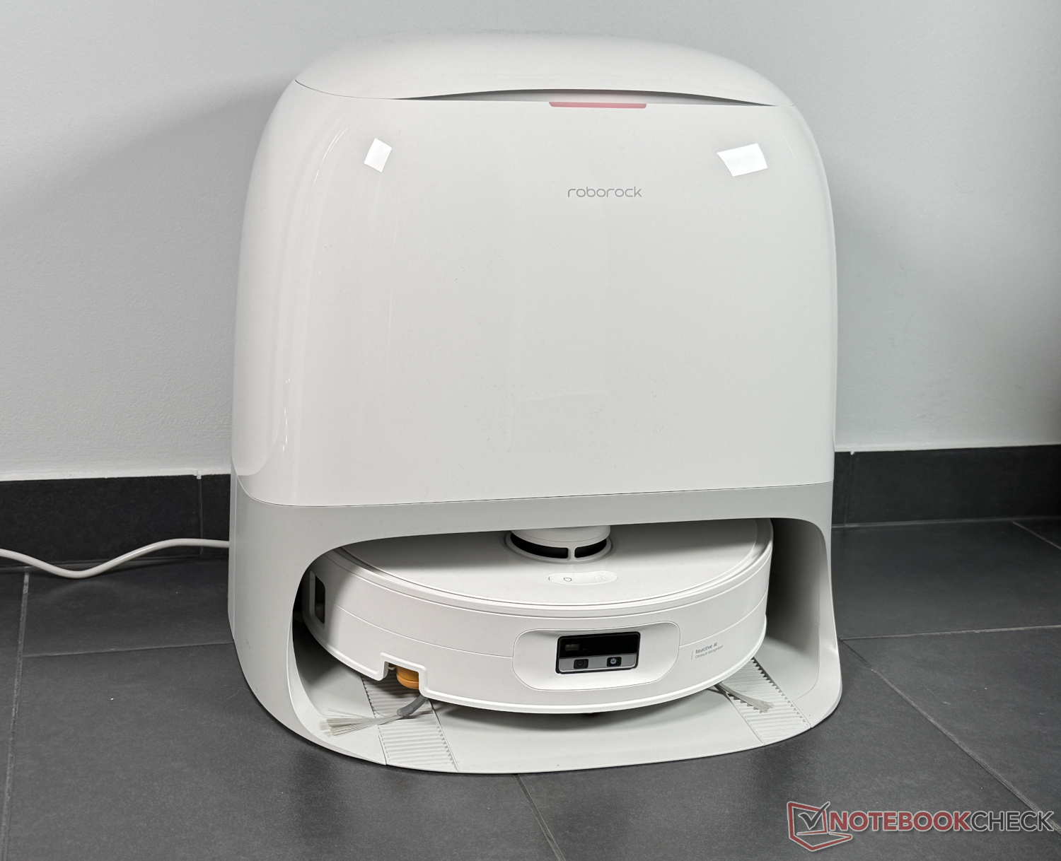 Upparbetningen i stationen fungerade tillförlitligt, så att den rullformade moppen alltid var fin och ren. Förutom avsaknaden av självrengöring i stationen var en negativ aspekt av testet att rengöringsstationen var ganska högljudd med cirka 45 dB (mätt från 1 m avstånd) när mopprullen torkade. Roborock Qrevo Curv 2 Flow är mycket mer hörbar och därför mer märkbar under några timmar än några av sina konkurrenter. Detta bör man ha i åtanke om stationen ska placeras direkt i boendemiljön.
