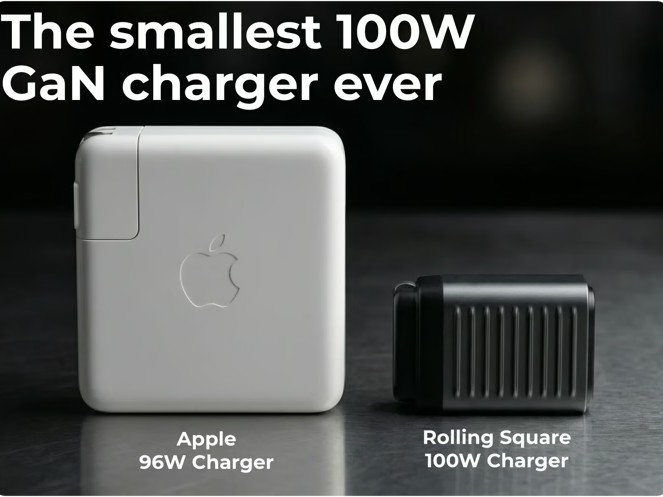 Förra året släppte Rolling Square en 65W GaN-laddaresom påstods vara den minsta 65W-laddaren i världen. I år har de följt upp med en ny 100W-modell som har högre effekt och som också marknadsförs som den minsta (100W) laddaren i världen.