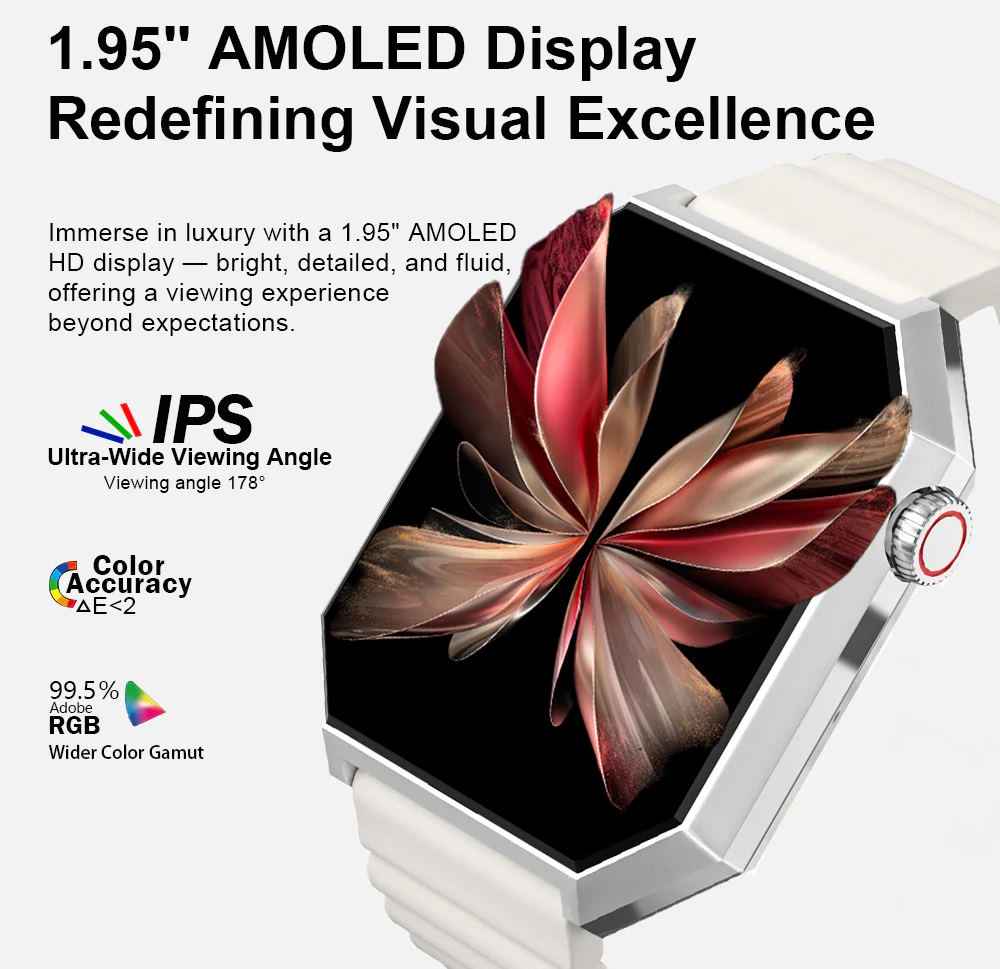 Klockan har en 1,95-tums AMOLED-skärm med en upplösning på 460 x 460 pixlar. Rollme specificerar en färgavvikelse på Delta E < 2, men det finns ingen officiell information om ljusstyrkan, vilket förmodligen är mer relevant för en wearable som denna. Hur som helst är klockan 10,5 mm tjock och 40 mm bred, medan 380 mAh-batteriet ska hålla i upp till 10 dagar på en full laddning. Edge erbjuder dessutom de vanliga funktionerna och kan till exempel visa notiser och väderinformation.