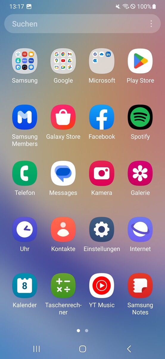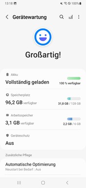 Av de 128 GB i vår testenhet är knappt 96 GB lediga vid första uppstarten. Detta beror på det utrymme som OneUI och de förinstallerade apparna från Google och Samsung kräver, liksom det tiotal förinstallerade tredjepartsappar som Disney+, LinkedIn, Pinterest och TikTok. Dessa kan alla avinstalleras om de inte behövs. OneDrive kan dock bara avaktiveras, men åtminstone göras osynlig i applådan.