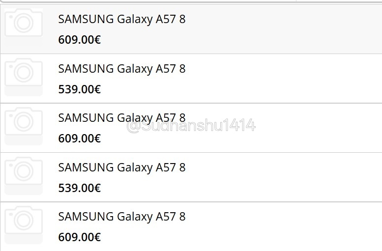 Galaxy A57 ser ut att få en identisk behandling. Den kommer att levereras som standard med 8 GB RAM men kommer att finnas tillgänglig med 128 GB eller 256 GB lagringsutrymme. Den förstnämnda kommer enligt uppgift att kosta €539, medan 256 GB SKU är listad till €609. Precis som med Galaxy A37 representerar det också en ökning på € 60, eftersom basen Galaxy A56 kostade € 479 vid lanseringen.