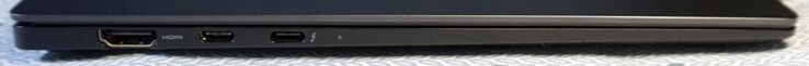 USB-C och Thunderbolt 4 är också installerade till vänster. Tyvärr är det inte möjligt att ladda från båda sidor. Ändå är placeringen vettig. USB-C-porten, som endast uppnår datahastigheten för USB 3.0, kan användas för laddning, medan Thunderbolt förblir fri för allt annat.