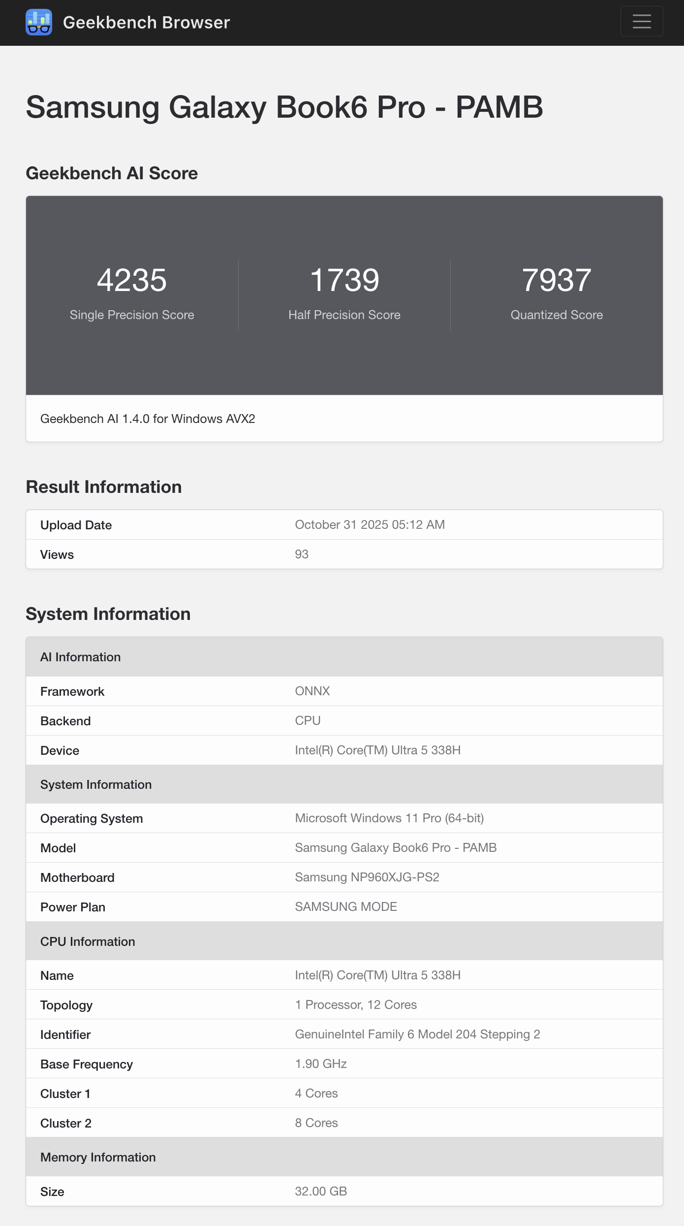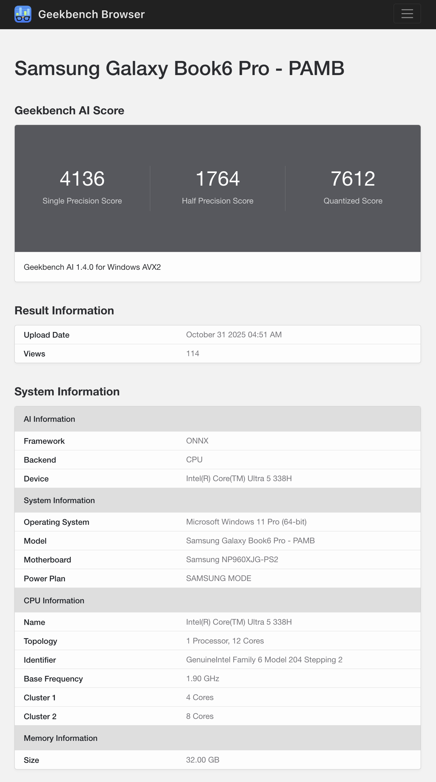 Nu klargör Geekbench att åtminstone en Galaxy Book6 Pro-variant också kommer att levereras med en Core Ultra 5 338H-processor från Intels Panther Lake-familj. Core Ultra 5 338H är utrustad med tolv kärnor som är jämnt fördelade mellan prestanda, effektivitet och strömsnåla kluster, och sägs vara mer effektiv än Lunar Lake-ekvivalenter som Core Ultra 5 238V. Som ett resultat av detta bör Galaxy Book6 Pro leverera överlägsen batteritid än Galaxy Book5-seriens modeller som Galaxy Book5 Pro 360 (för närvarande 1 358 USD på Amazon).