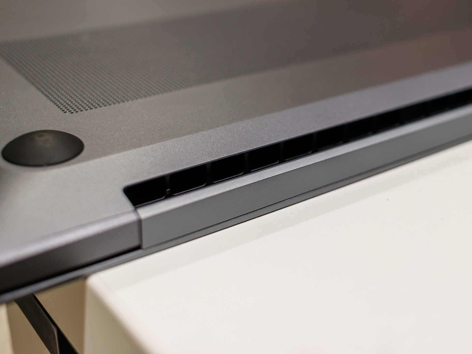 En förstorad ångkammare sägs göra kylningen cirka 35 procent mer effektiv. Vi utsatte den bärbara datorn för ett första belastningstest med FurMark 2. I 1.440p-riktmärket är fläktarna tydligt hörbara men inte för höga. Men vi märkte också ett tyst gnisslande ljud från testenheten.