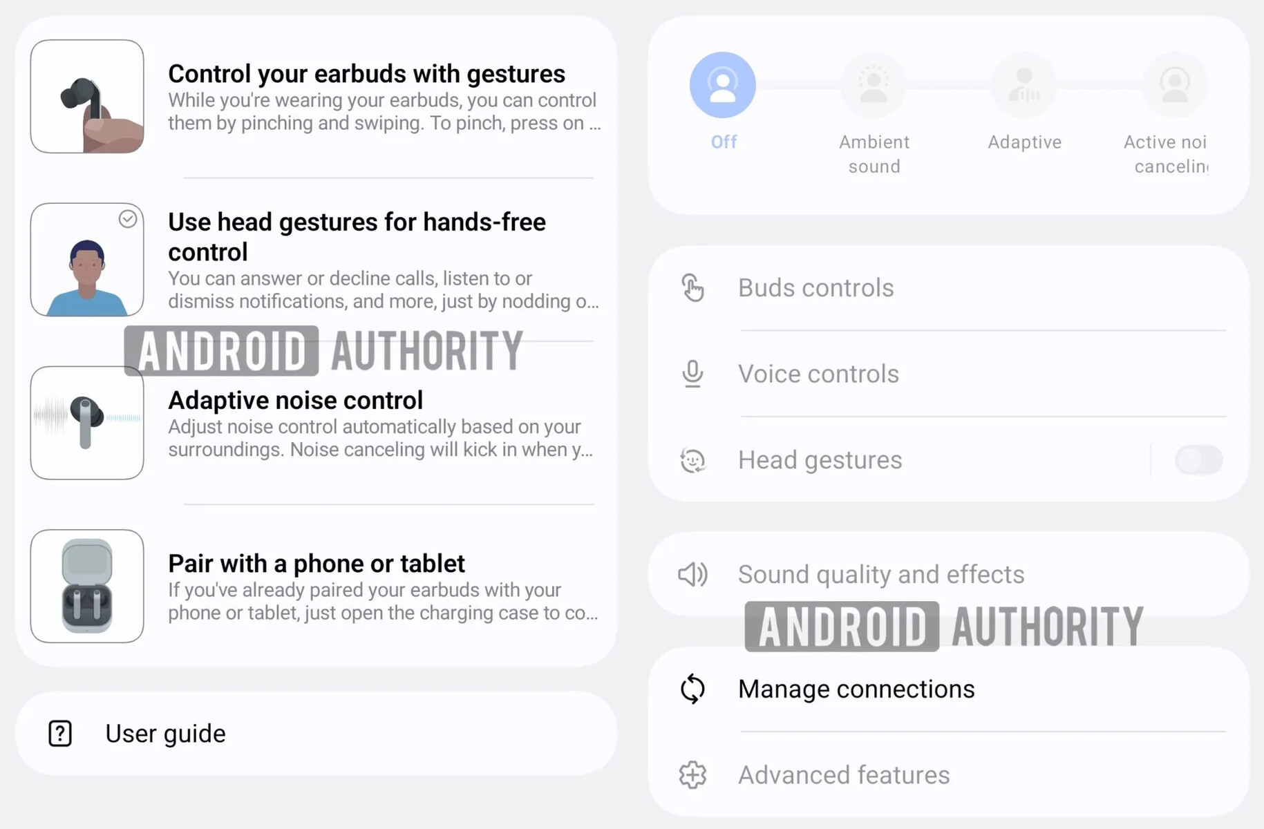 Istället har Galaxy Buds4-serien en dubbeltonad finish med en platt skaft. Även om Samsung verkar ha tagit bort ljusfältet från Galaxy Buds3-serien, kommer gestkontrollerna tillbaka, liksom Multi Point-anslutning och adaptiv brusreducering. Dessutom har Samsung integrerat huvudgester som gör att du kan svara på meddelanden och inkommande samtal utan att behöva använda fysiska gestkontroller eller titta på din telefon.