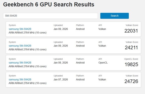 Samsung Exynos 2600-testenheter har redan dykt upp på Geekbench tidigare och gett en indikation på den förväntade CPU-prestandan. Nu har en Samsung-smartphone med modellnumret SM-S942B också dykt upp i Geekbench-databasen. Den här modellen förväntas vara den internationella Galaxy S26. Som kan ses från specifikationerna har den en 10-kärnig SoC med Samsung Xclipse 960, vilket innebär att det helt klart är Exynos 2600. Detta är också en ganska uppenbar antydan om att den europeiska Galaxy S26 kommer att ha Samsungs egen processor.