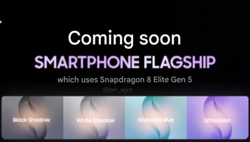 Vi kan inte vara säkra på om detta är en fejk, men den pålitliga läckan Ice Universe har kommenterat läckan och påpekat en detalj som kan ge upphov till ytterligare diskussion. Enligt den påstådda Samsung-kampanjen (maskinöversatt nedan till höger), flaggskeppssmartphonen med Snapdragon 8 Elite Gen 5 kommer att finnas tillgänglig i fyra färgalternativ: Black Shadow, White Shadow, Galactial (kanske "Galatial" Blue) och Ultraviolet. Den något ljusare och AI-uppskalade renderingen ovan antyder också den ultravioletta färgen. Du kan hitta originalet nedan