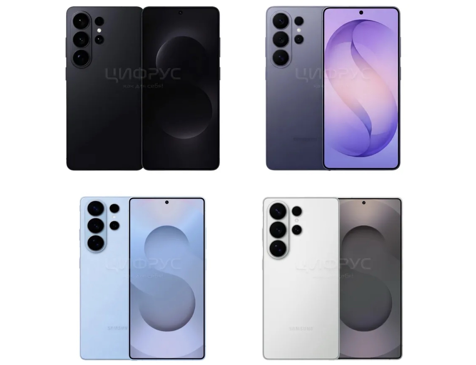 Den ryska online-återförsäljaren Cifrus har kort listat Galaxy S26 Ultra och även publicerat bilder av flaggskeppet i dessa två färger. Med det sagt finns det mindre inkonsekvenser i de vita och blå varianterna, till exempel kameramodulens placering och hörnradie eller Samsung-logotypen. Av den anledningen bör dessa bilder ses med en hälsosam dos av skepsis.