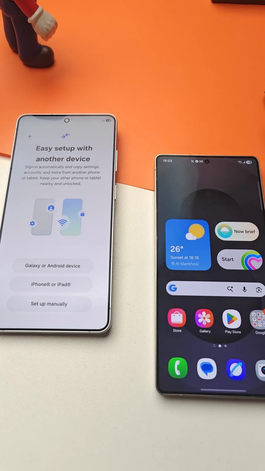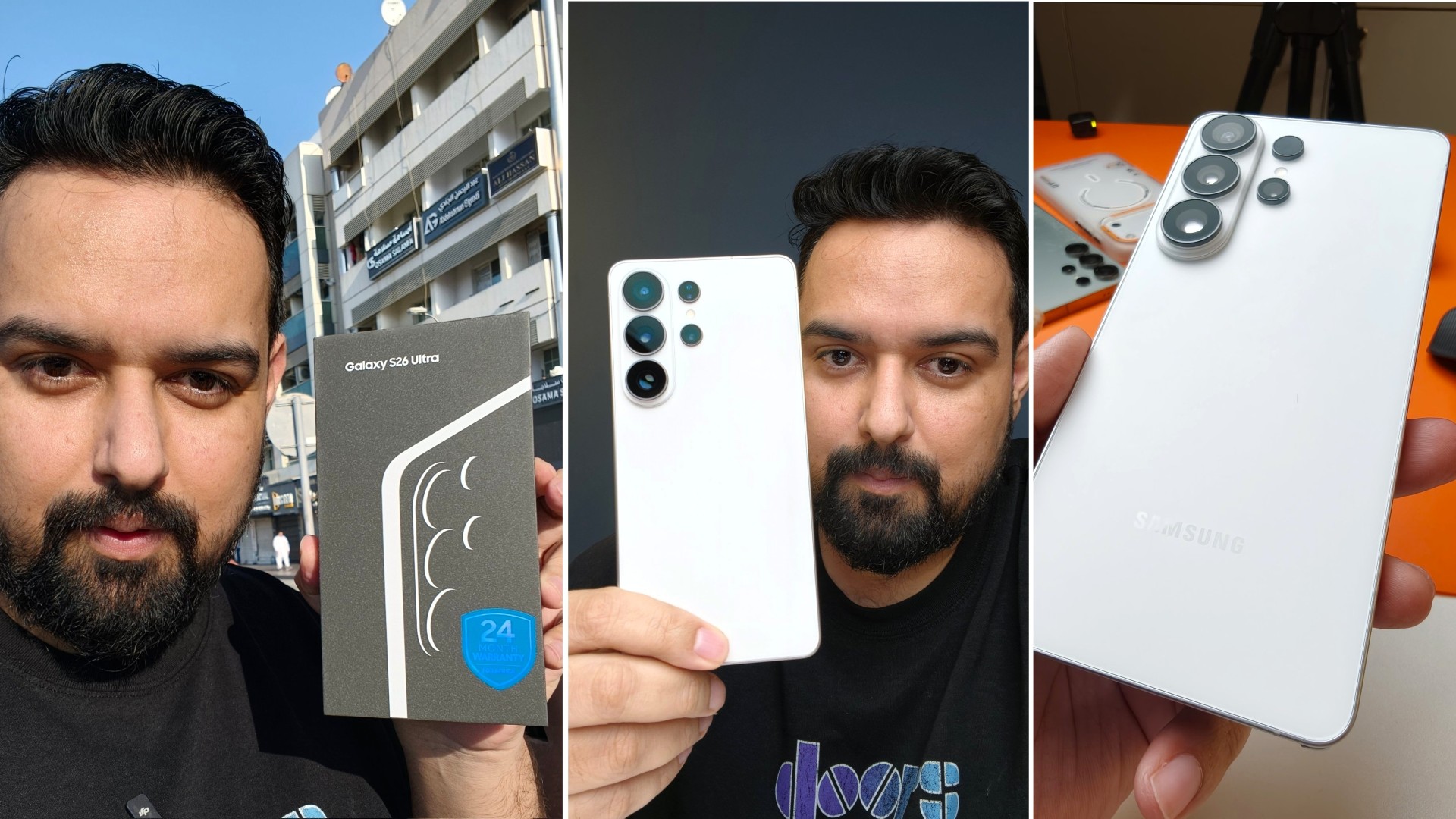 På dessa första bilder håller den otåliga köparen det dyra vita Samsung-flaggskeppet upp mot kameran och efter den första installationen och överföringen av data från en Galaxy S25 Ultra(tillgänglig på Amazon), jämför han den omedelbart med flera andra telefoner. Dessa inkluderar föregångaren, Apple's iPhone 17 Pro Max och Vivo X300 Pro.
