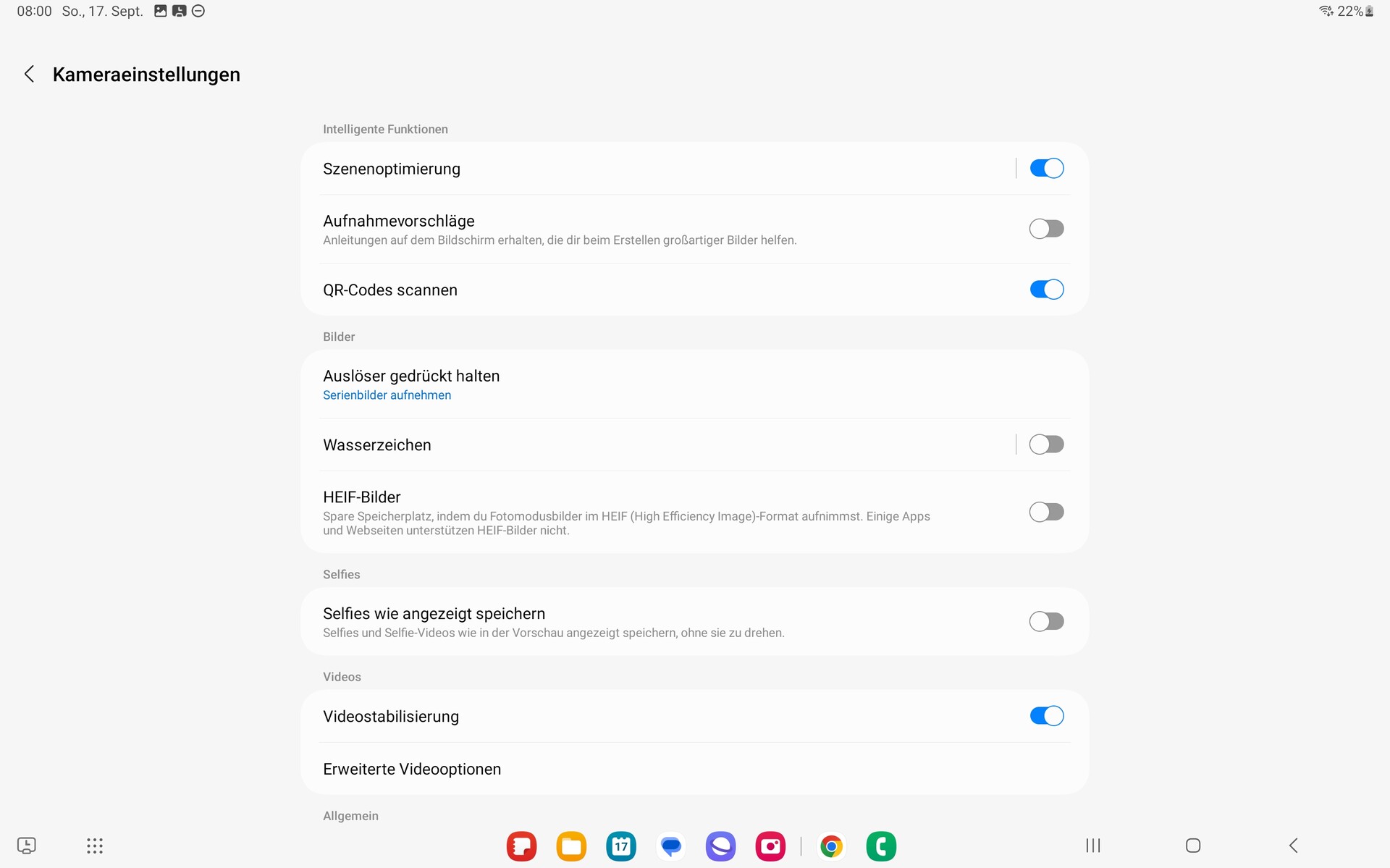 På baksidan finns den 13 MP-kamera som vi redan känner till från Tab S8 Ultraanvänds. Inspelningarna bör tillfredsställa de flesta surfplatteanvändares krav, men med tanke på det mycket höga priset kunde kvaliteten också ha blivit bättre. Varken belysningen eller skärpan är riktigt övertygande. Den nominellt förbättrade ultravidvinkelkameran med en upplösning på 8 MP verkar för suddig, särskilt i kantområdena, och detaljer fångas inte heller på ett attraktivt sätt. Båda linserna visar också korniga strukturer, särskilt i mörkare bildområden. Även om det är vettigt att Samsung skulle fokusera mer på kamerainställningen framför, är inspelningsprestandan ganska nedslående för en 1 400-euro-surfplatta.