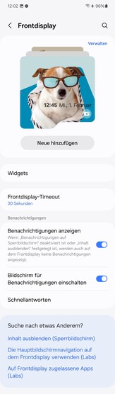 Återigen kan den externa displayen visa olika widgets - ett område där Flip knappast skiljer sig från sin föregångare. Anpassade appar kan också användas. Funktionen måste dock först aktiveras under Labs, och listan fortsätter att vara mycket ofullständig.