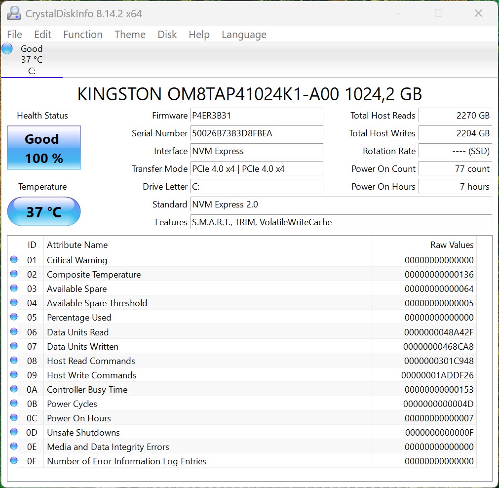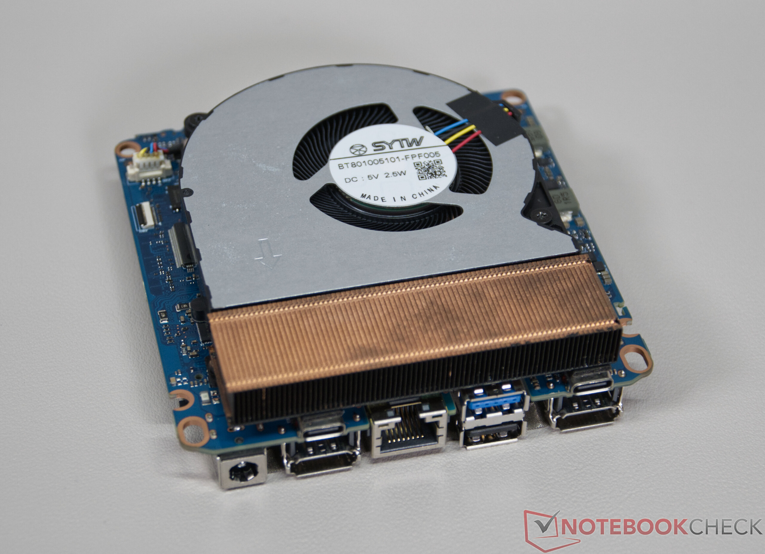 Sapphire Edge AI säljs i allmänhet utan masslagring, så valet av lagringsmedium är upp till köparen. Testanordningen som vi fick är utrustad med en SSD från Kingston, som ger solid vardaglig prestanda. Den stabila prestandan under belastning, som säkerställs av den passiva kylningen på toppen av höljet, bör betonas. Själva enheten erbjuder utrymme för två masslagringsenheter.