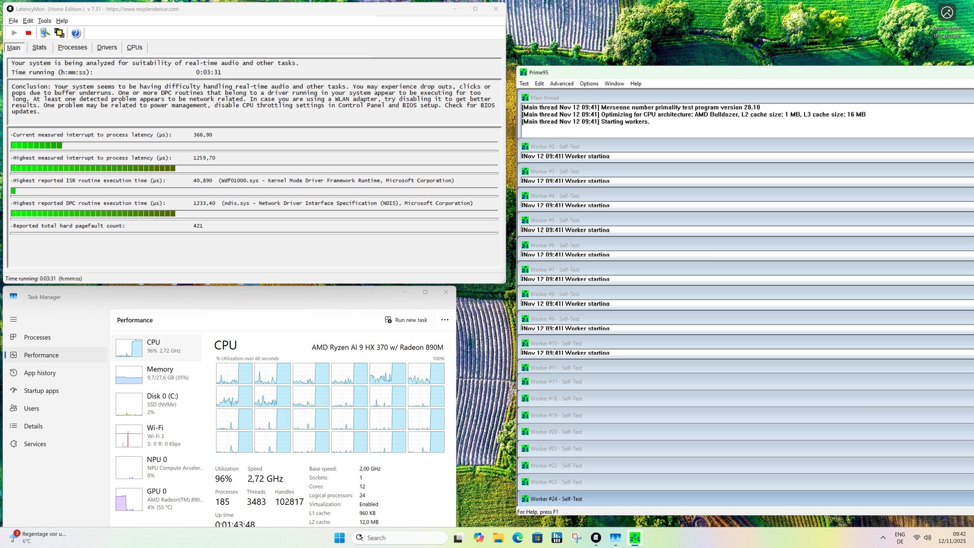 | DPC Latencies / LatencyMon - interrupt to process latency (max), Web, Youtube, Prime95 | |