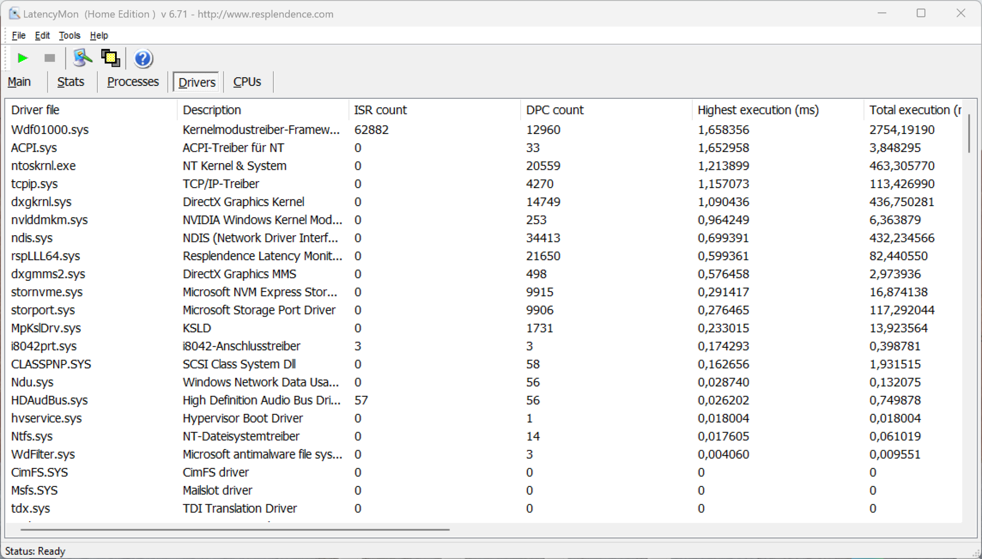 I vårt standardiserade latens-test (surfning på webben, 4K-uppspelning av YouTube, CPU-belastning) visade testenheten med den aktuella BIOS-versionen små begränsningar vid användning av realtidsljudapplikationer. Det förekom också många överhoppade bildrutor vid videouppspelning (111 av 3 683).