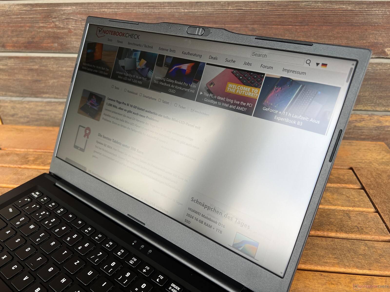 Den bärbara datorn är utrustad med en föråldrad Core i5-1235U som använder låga effektgränser, varigenom dess prestanda är helt tillräcklig för enkla vardagliga uppgifter. Delvis är dess PCIe SSD också ansvarig för detta goda subjektiva intryck. Å andra sidan blir den lilla fläkten ganska irriterande under belastning eftersom den avger ett högt ljud och helt enkelt blir för högljudd överlag. Den bärbara datorns matta IPS-skärm med Full HD-upplösning är mycket ljusstark med 400 cd/m².