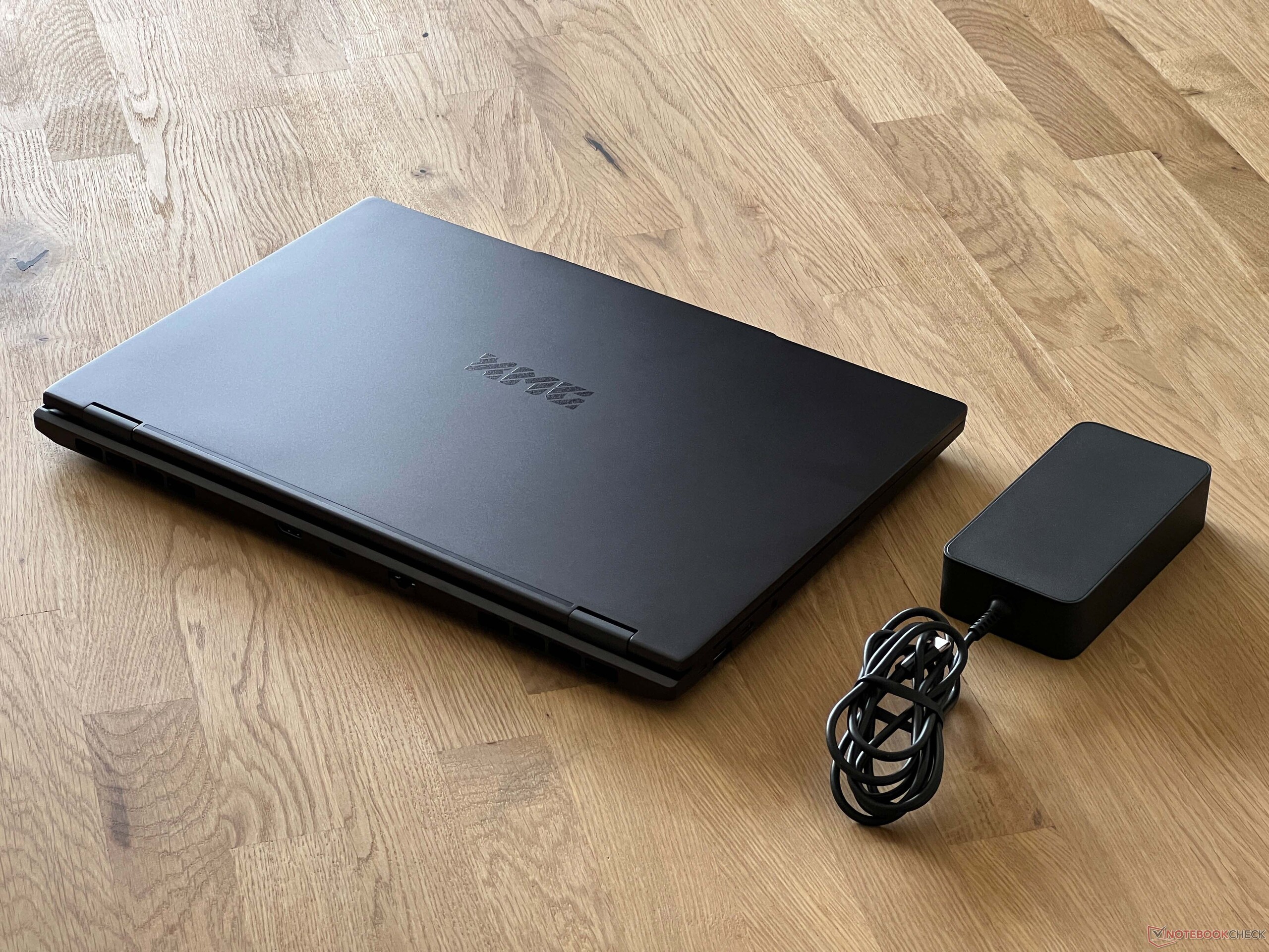 Med en tjocklek på cirka 2 cm är Evo 15 inte den tunnaste bärbara datorn, men den strävar inte heller efter att vara det. Dess fotavtryck är dock betydligt mer kompakt än hos 16-tums konkurrenterna. Med en vikt på cirka 1,7 kg är den också en av de lättare modellerna i vårt jämförelsefält. Strömförsörjningen på 100 watt väger 513 gram, men då ingår den långa strömkabeln (1,8 + 1,5 meter).