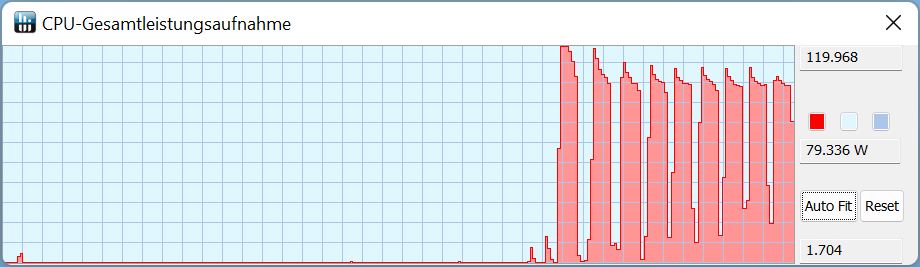 Och det är här som XMG Oasis äntligen ger ett tydligt positivt bidrag. Eftersom Neo 15:s genomsnittliga CPU-kärntemperatur ligger strax under 90 °C, pressar Oasis ner detta värde med över 10 °C till bara 79 °C. Detta märks även i strömförbrukningen eftersom termiska gränser saknas i närvaro av Oasis. Systemet kan alltså alltid utnyttja hela 95 W (standard Overboost-läge) eller mer (Overboost