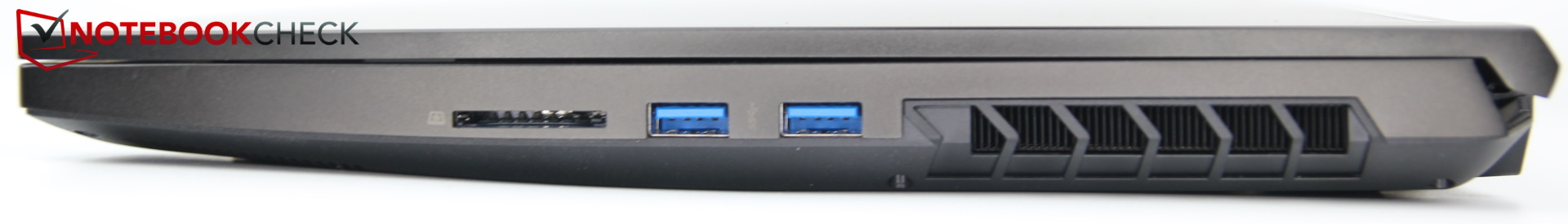 Neo 15 har totalt fyra USB-portar, tre av dem typ A och en typ C, som också är en Thunderbolt-port. Den sistnämnda stöder DisplayPort, men är tyvärr inte VR-kapabel på grund av anslutningen till iGPU:n, och PowerDelivery stöds inte. Av de tre USB-A-portarna klarar endast den vänstra 10 Gbit/s, de två högra endast 5 Gbit/s (USB 3.2 Gen1 motsvarar USB 3.0).