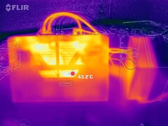 (±) Den maximala temperaturen på ovansidan är 44 °C / 111 F, jämfört med genomsnittet av 40.4 °C / 105 F , allt från 21.2 till 68.8 °C för klassen Gaming.