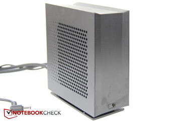 Neo har en ganska låg strömförbrukning när den är inaktiv, men är högre än många konkurrenter när den är belastad. Endast Alienware förbrukar mer. Vi uppmätte kortsiktiga belastningstoppar på omkring 300 W, men spelande förbrukade 234 W i genomsnitt. Det enorma (ca 18 x 8,5 x 3,5 cm) 280 W-aggregatet bör därför alltid ha tillräckliga reserver. Ett 330 W nätaggregat för extrema användare är också planerat.