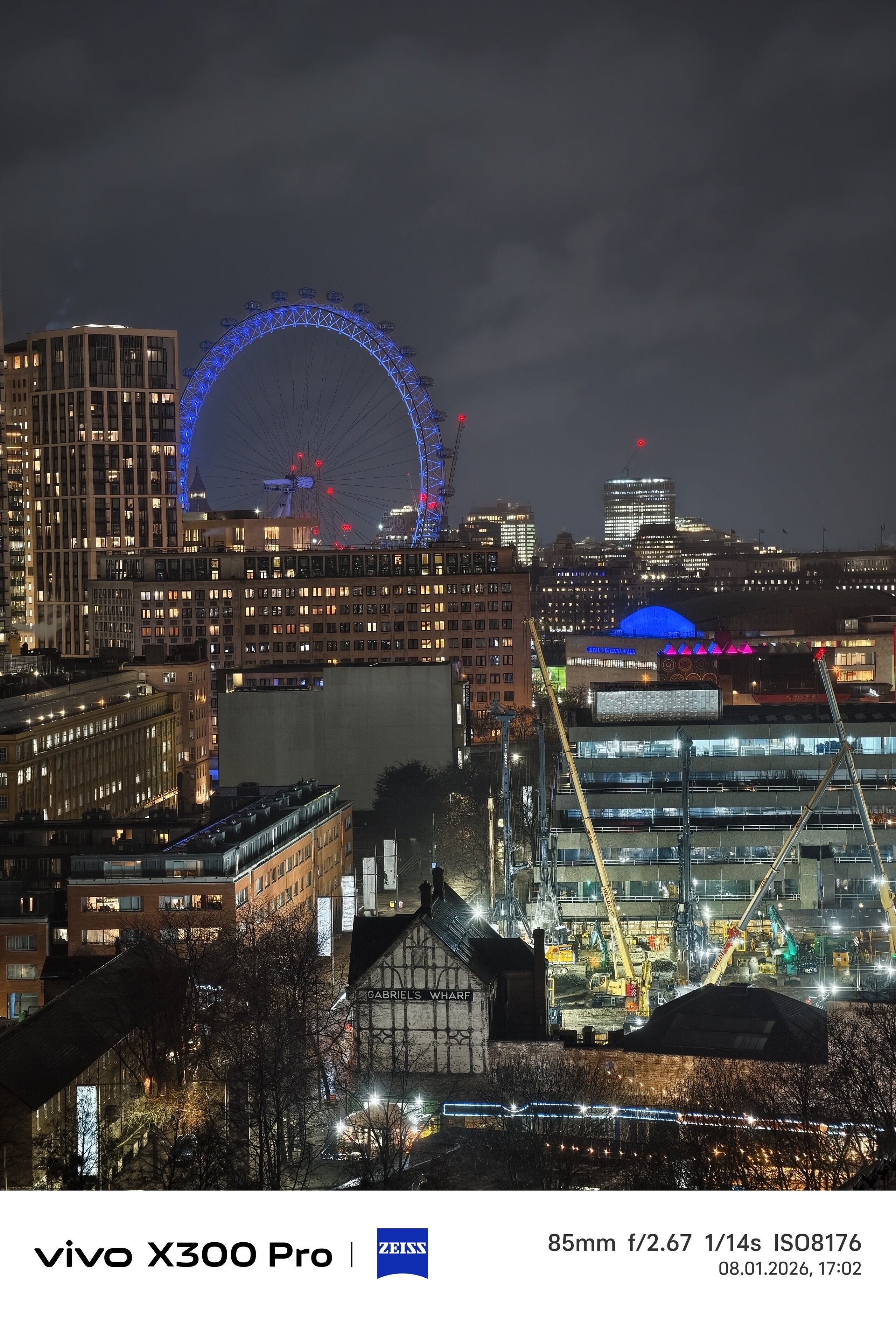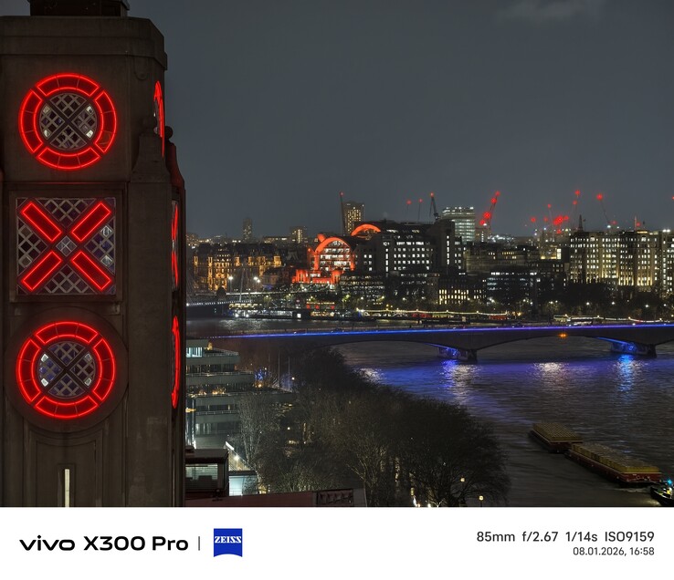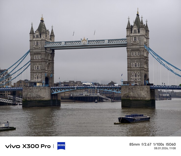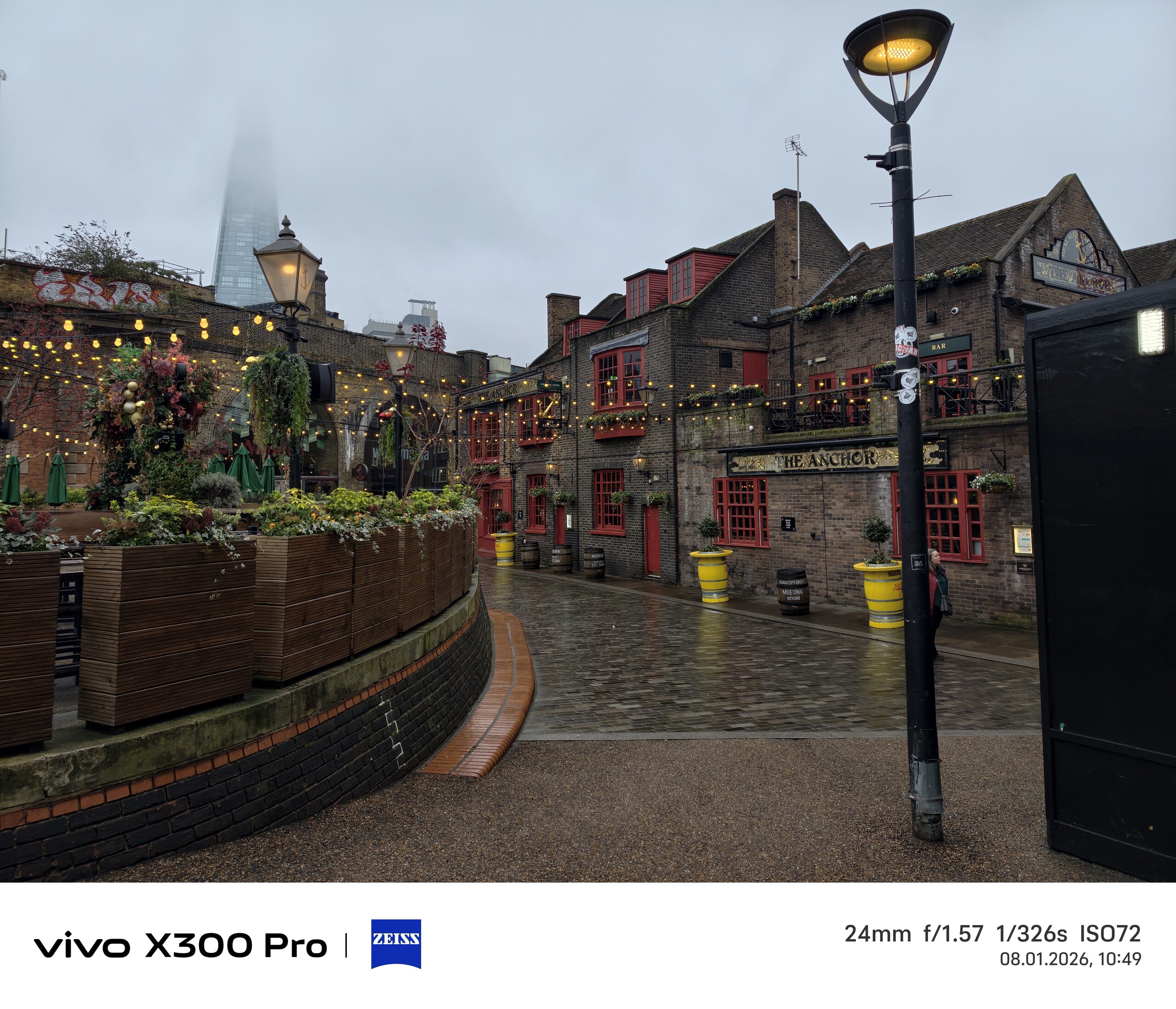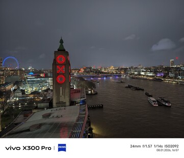 Vädret i London var molnigt, vilket X300 Pro fångar något bättre, eftersom bilderna i allmänhet inte ljusas upp lika mycket. Vi skulle dock ha föredragit att det var en aning ljusare. Honor gör tvärtom och gör bilden betydligt ljusare hela tiden för att antyda ett större dynamiskt omfång. Här skulle vi ha föredragit en något mörkare bild. Tyvärr kan exponeringskompensationen bara justeras i Pro-läget på båda smartphones, och inte ens detta sparas permanent.