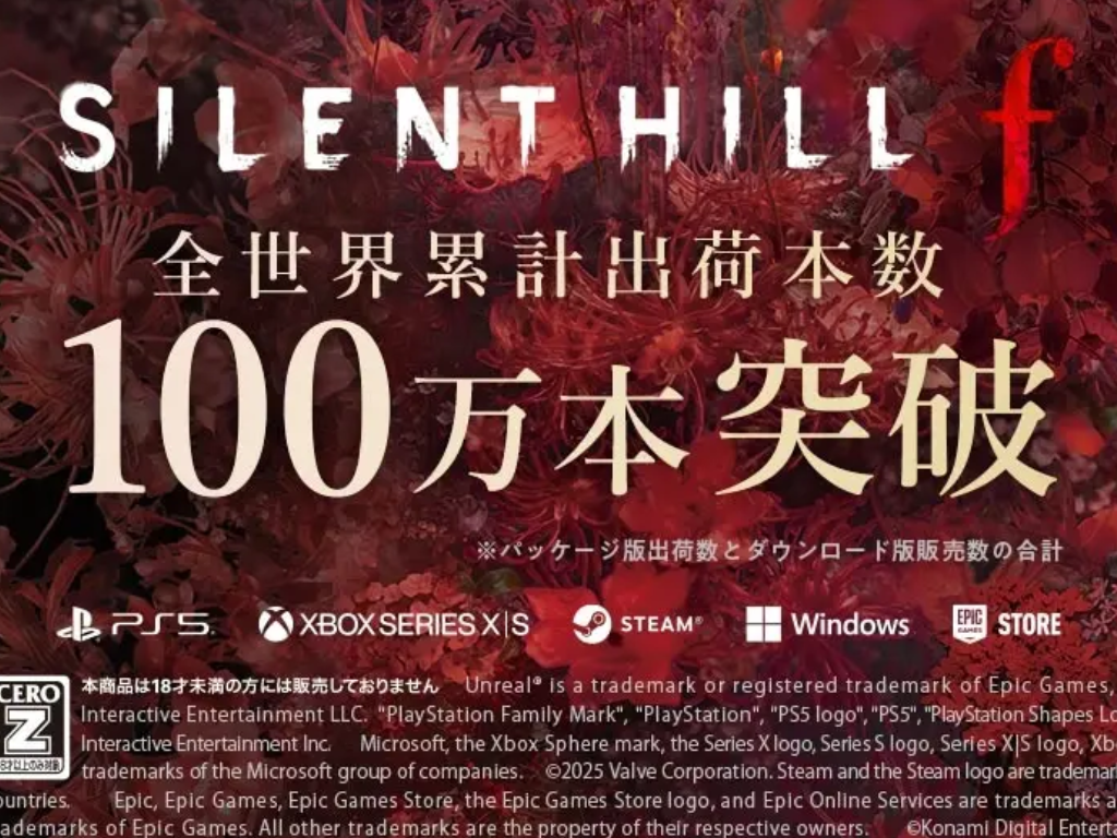 Konami har meddelat att det senaste fristående spelet i Silent Hill-serien, Silent Hill f, har sålt över 1 miljon exemplar på fysiska och digitala plattformar på bara en dag efter lanseringen den 25 september 2025.
