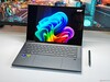 Acer använder en 14,5-tums OLED-pekskärm (2 880 x 1 800 pixlar, 16:10) med 120 Hz från Samsung. De grundläggande OLED-styrkorna (levande färger, höga kontraster, snabba svarstider) är närvarande, men pekskärmslagret resulterar i en tydligt synlig rastereffekt, vilket kraftigt försämrar den subjektiva bildkvaliteten, särskilt med ljust innehåll. Vi försökte fånga detta på bilden till höger, men kameran förvärrar problemet minimalt. Det finns också PWM-flimmer vid 240 Hz på alla ljusstyrkenivåer. Både ljusstyrkan och färgtemperaturen kan styras av en sensor. Pekskärmen är mycket reflekterande, vilket begränsar dess användning, särskilt utomhus.