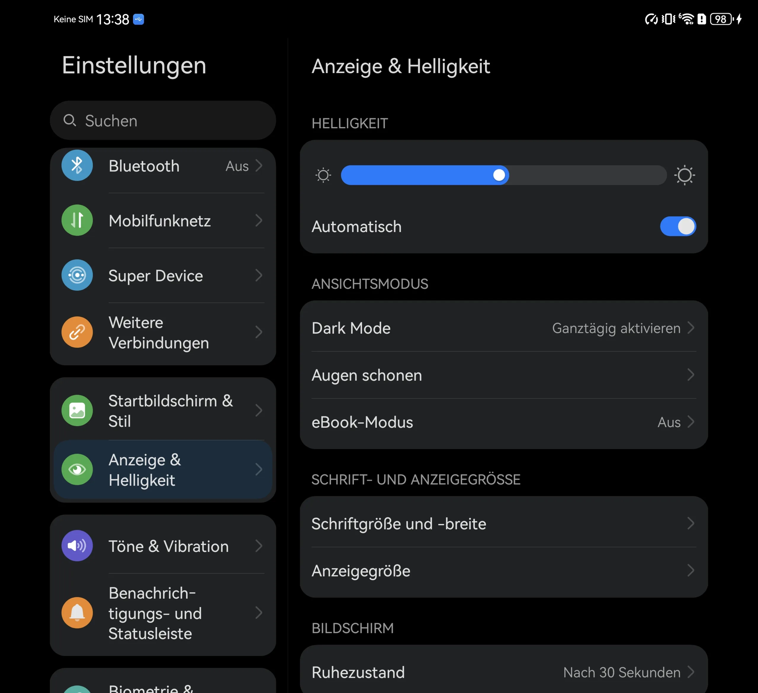Färgåtergivningen är också i nivå med den vikbara panelen och mycket exakt. Huawei gör heller inga kompromisser när det gäller PWM-dimning och använder samma teknik här.