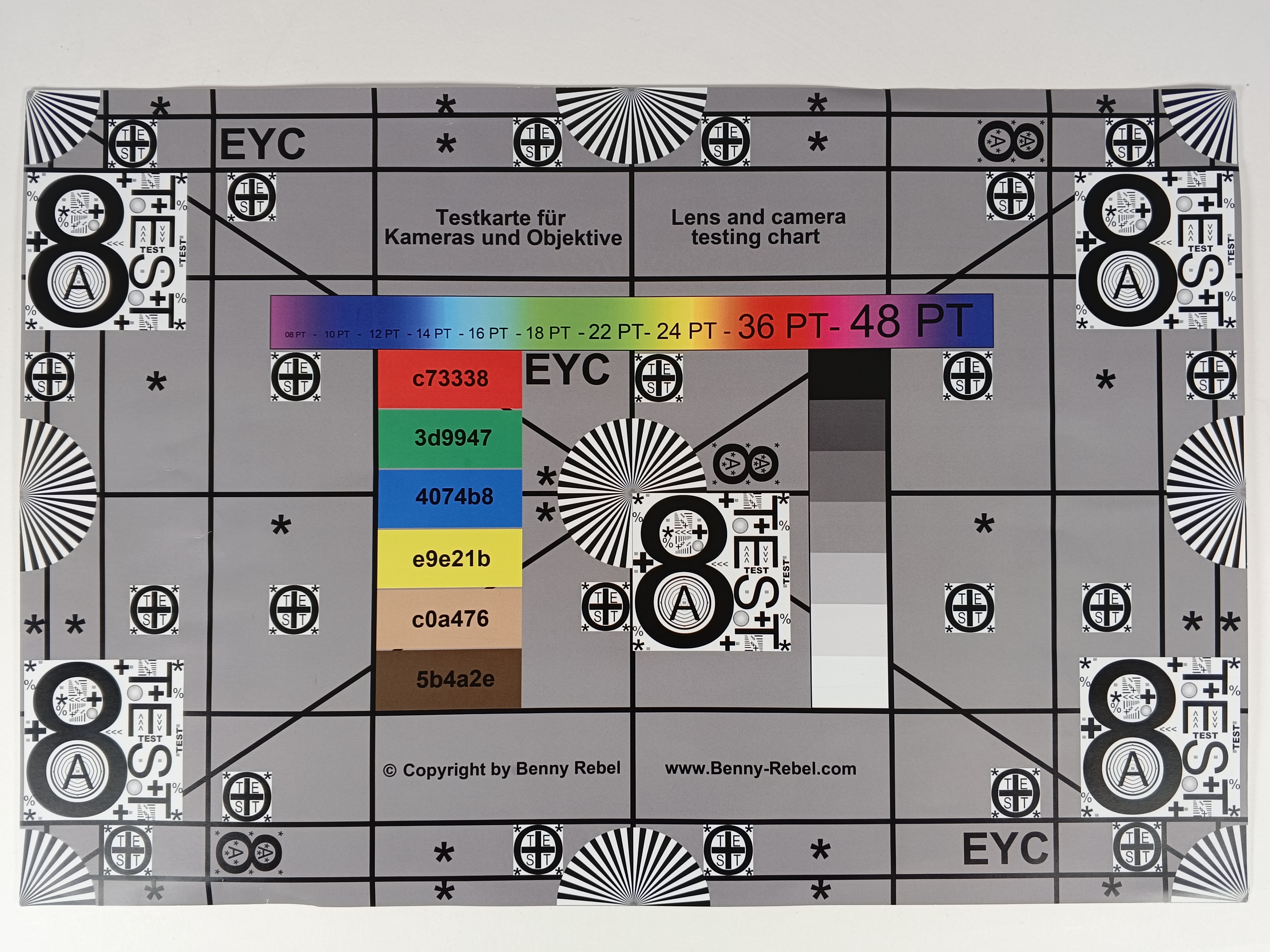 | Colorchecker dE 2000 * | 2 | 1.3 35% | 1.4 30% | 3.9 -95% |