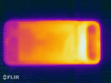 (+) Den maximala temperaturen på ovansidan är 39.7 °C / 103 F, jämfört med genomsnittet av 35.2 °C / 95 F , allt från 21.9 till 247 °C för klassen Smartphone.