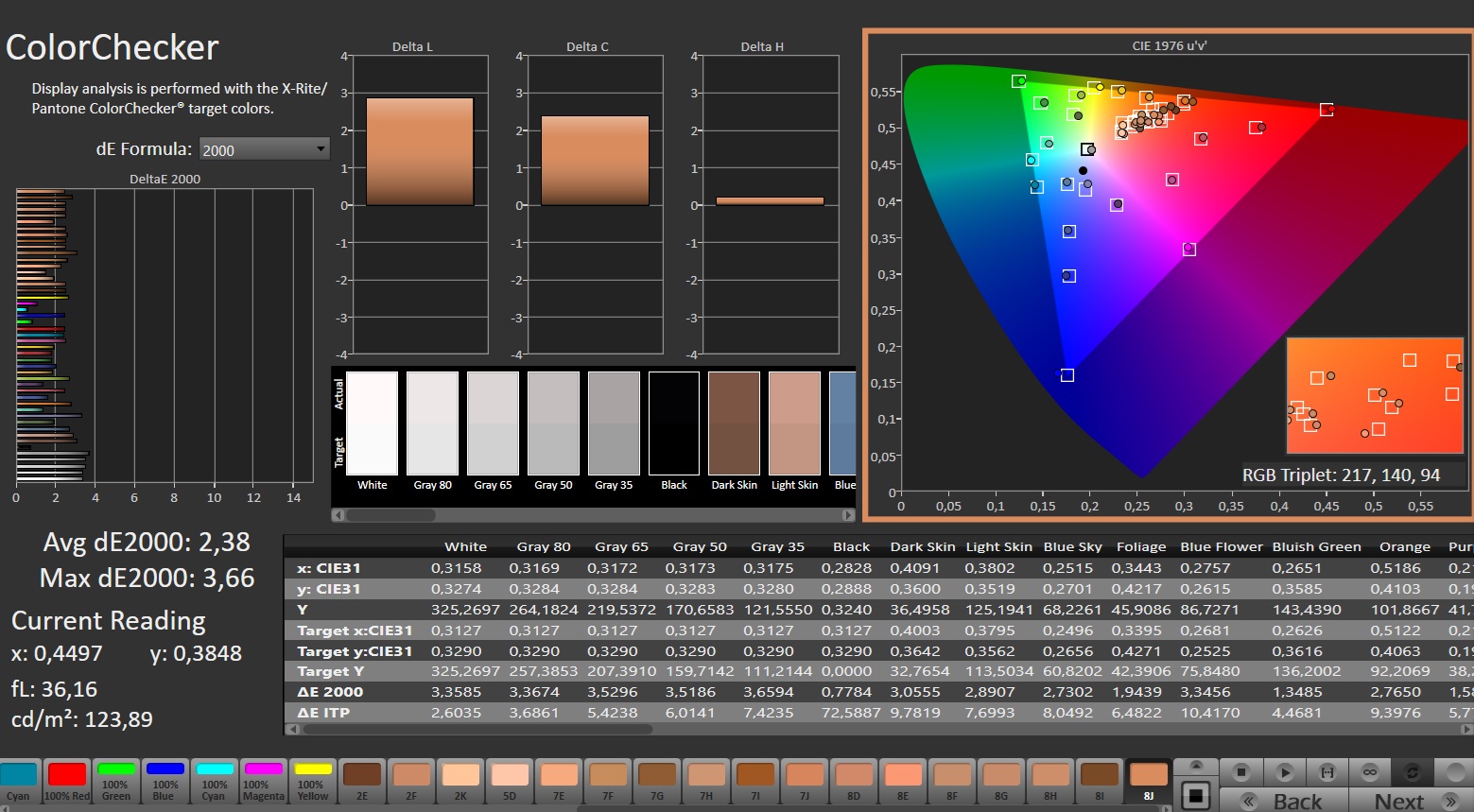 ΔE ColorChecker Calman: 2.38 | ∀{0.5-29.43 Ø4.79}