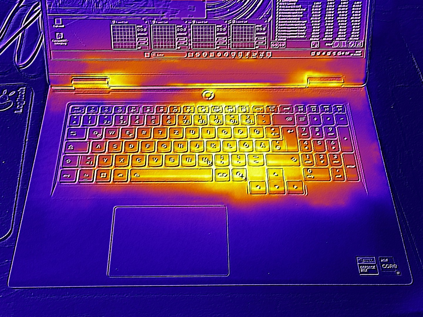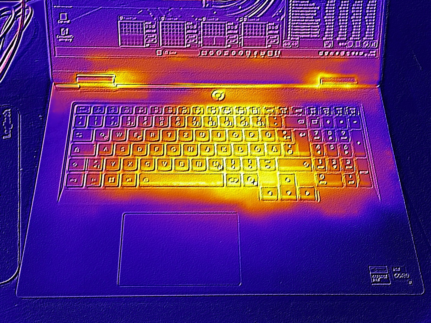(±) 3: The average temperature for the upper side is 37.4 °C / 99 F, compared to the average of 33.9 °C / 93 F for the class Gaming.