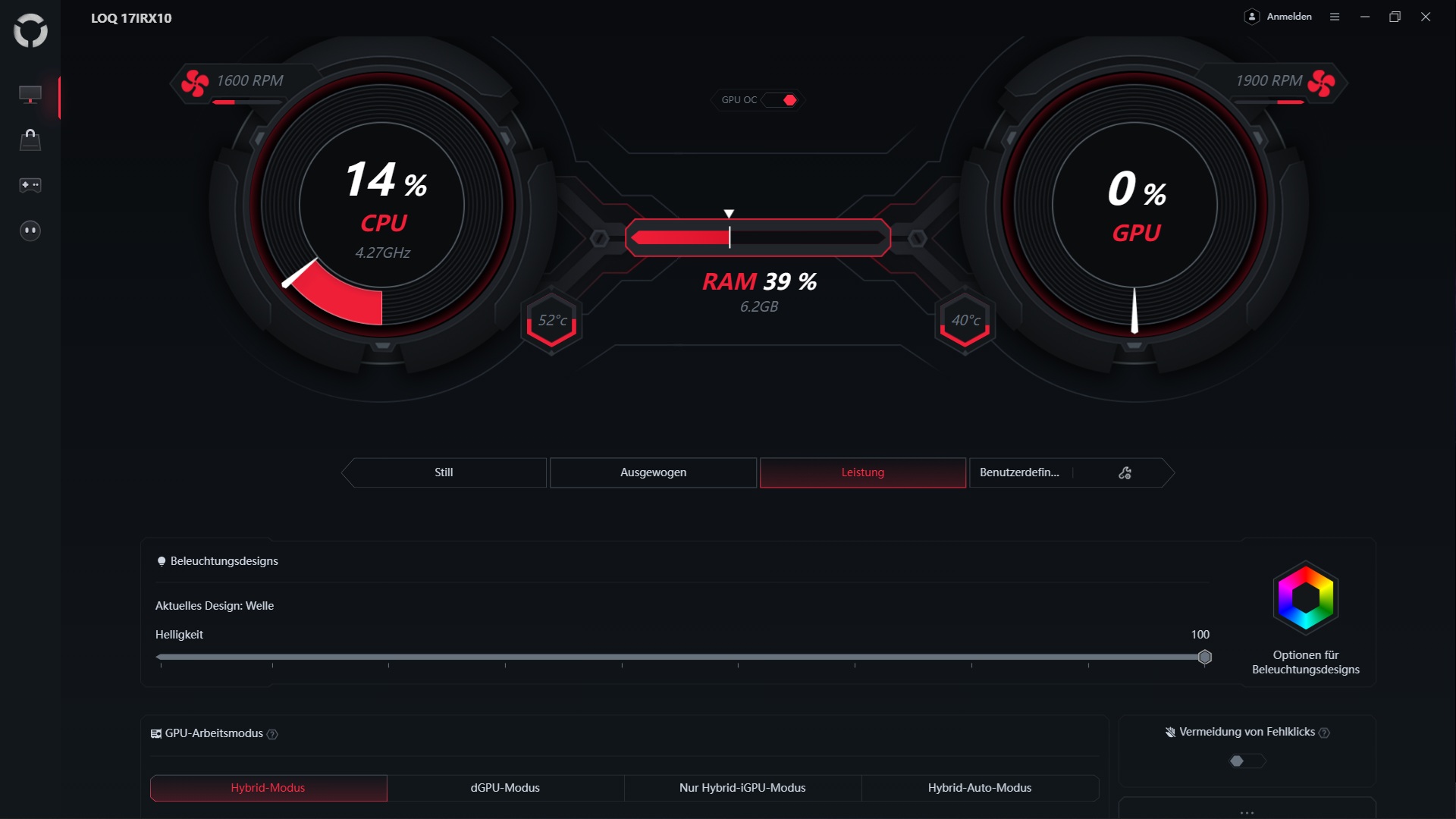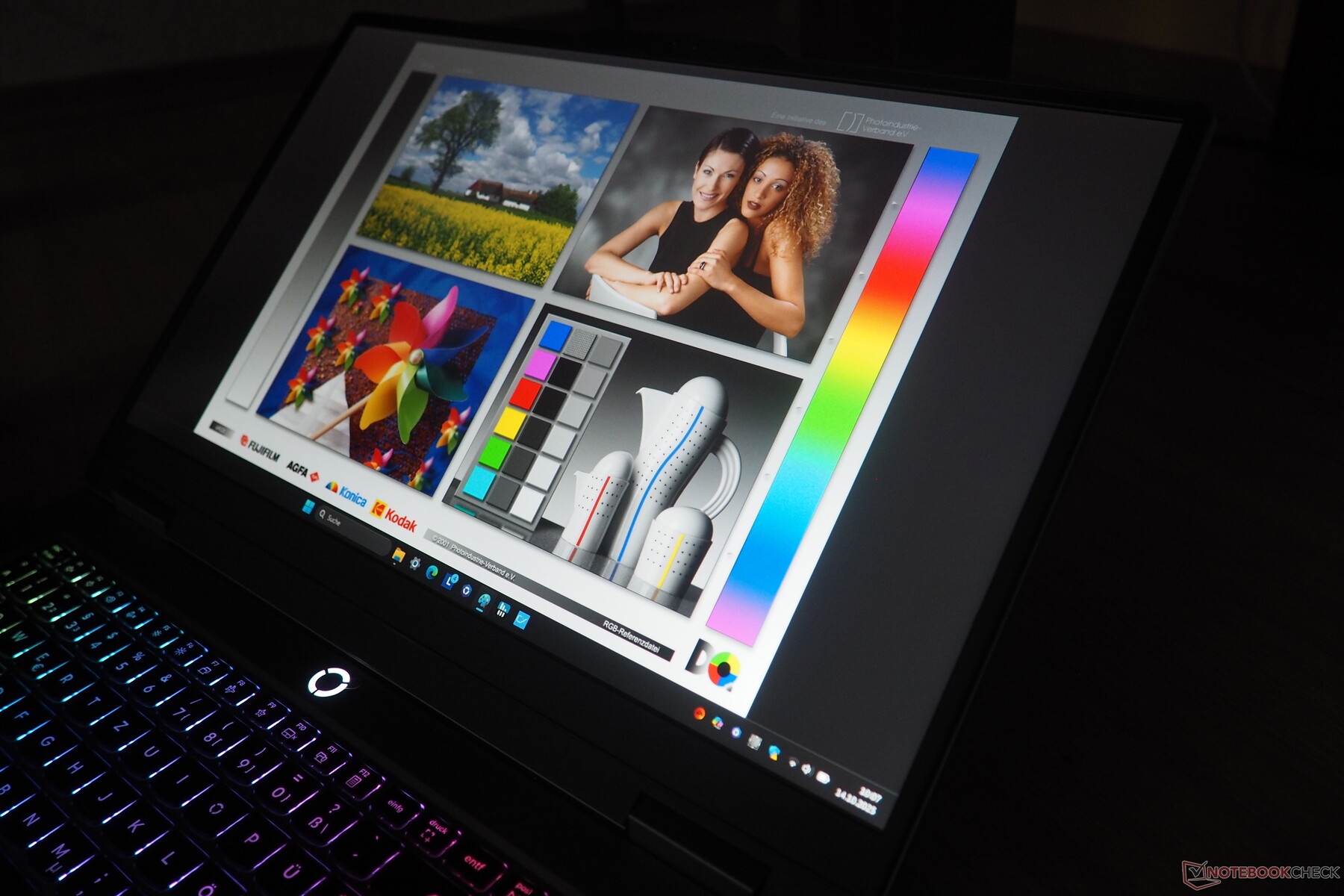 Tack vare den relativt ljusa färgen (Luna Gray) ger chassit ett inbjudande intryck, och spelare kommer också att uppskatta tangentbordets RGB-belysning. Byggkvaliteten och stabiliteten lämnar lite utrymme för klagomål, och ytorna ger i allmänhet bara vika under kraftigt tryck. En höjdpunkt är den generösa 180° öppningsvinkeln för skärmen, vilket inte är något man ser varje dag i veckan.