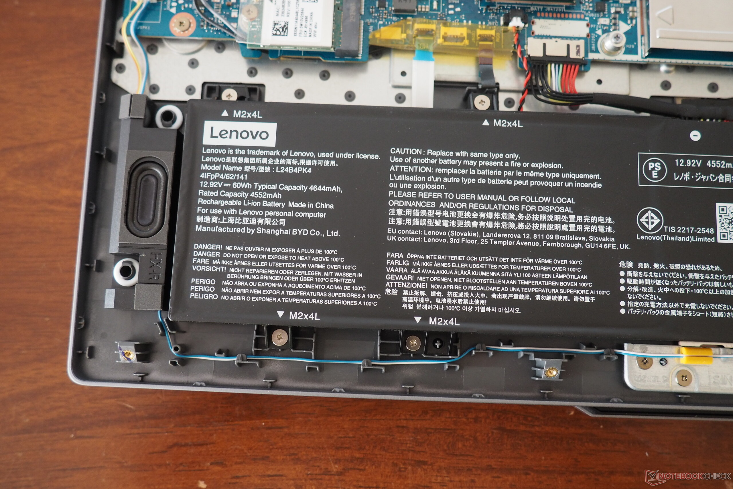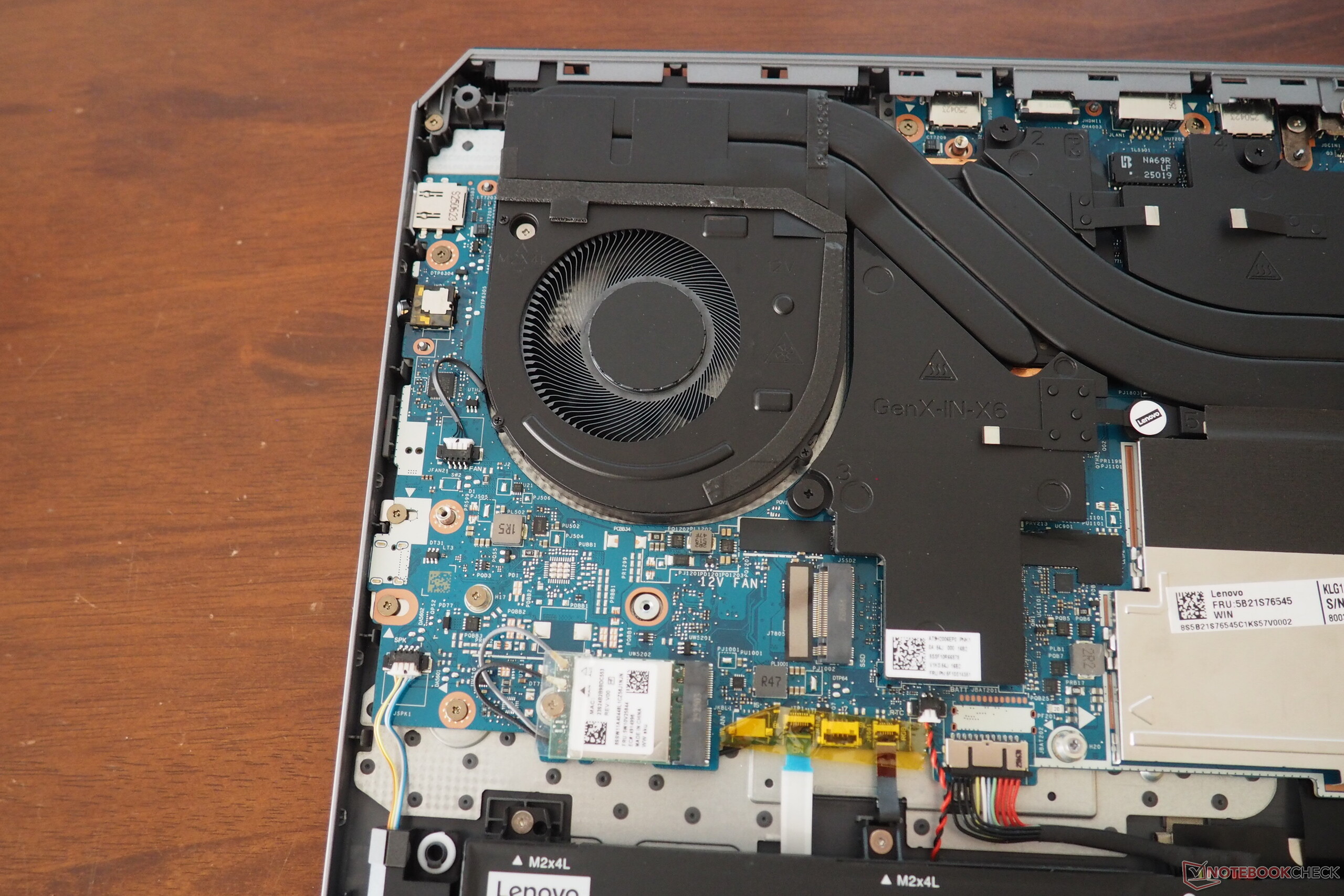 För att komma åt de interna komponenterna måste man först ta bort 10 små Phillips-skruvar från botten av chassit. Trots att den installerade SSD-enheten endast är en M.2 2242-modell, kan båda kortplatserna rymma vanliga 2280 SSD-enheter om det behövs.