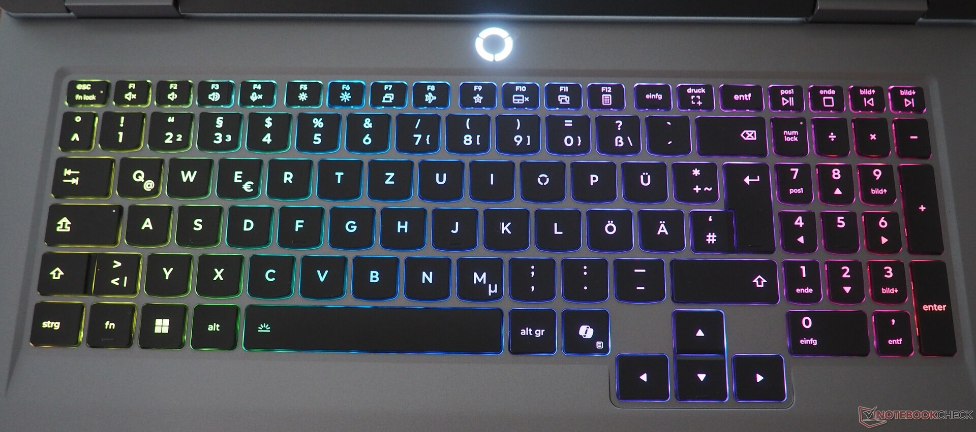 Även om tangentbordet inte riktigt matchar prestandan hos mekaniska tangentbord är skrivupplevelsen överlag solid. Den väldesignade layouten förtjänar särskilt beröm, och det är inte alltid en självklarhet, särskilt inte i spelsegmentet. Många konkurrenter skulle också kunna lära sig en sak eller två av de väl tilltagna piltangenterna. Detta kompletteras med en fullstor numerisk knappsats, vars tangenter (trots gott om utrymme) är något smalare än de som sitter på huvudtangentbordet. Den integrerade bakgrundsbelysningen är inte lika intensiv som på andra Lenovo gaming-tangentbord, t.ex. Legion 9 18, men den kan ändå justeras till flera nivåer.