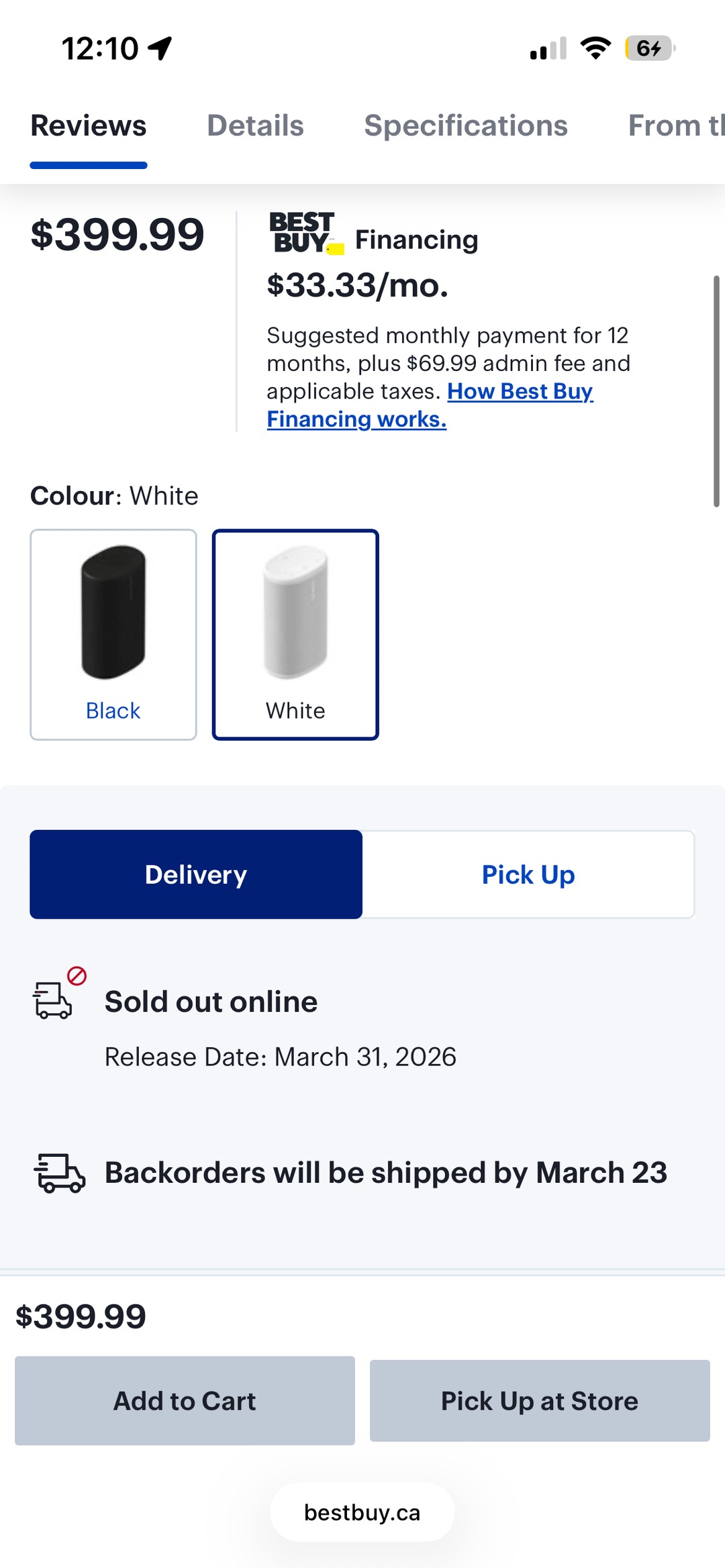 Sonos Play har en prislapp på 399 CA$ (~293 $/250 €/218 £). Den uppges släppas den 31 mars med leverans av restorder senast den 23 mars, så man kan anta att lanseringen av Sonos Play bara är några veckor bort.