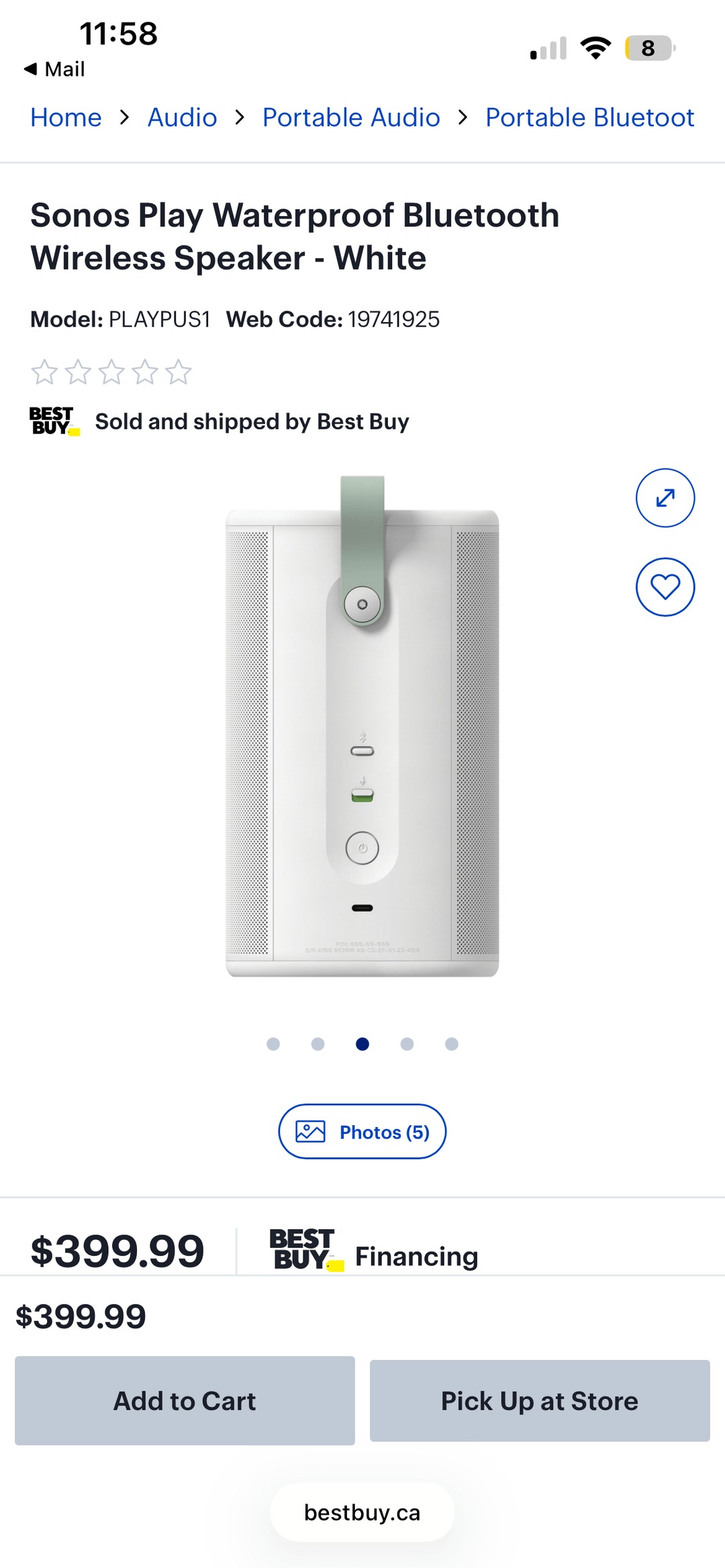 Produktlistan säger att Sonos Play är en vattentät trådlös Bluetooth-högtalare, och även om det inte är en första för en Sonos-högtalare, säger specifikationsbladet att den har en IP67-damm- och vattenbeständighetsgrad. Som jämförelse har Move 2(tillgänglig på Amazon för 499 $) en IP56-klassning.