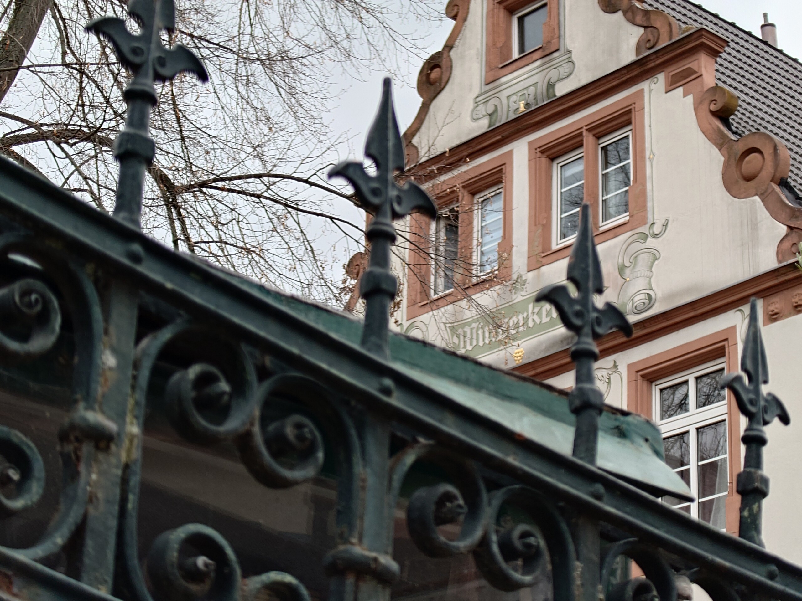 I själva staden, med sina många korsvirkeshus och villor, finns det en gammal vintradition. Det visas också på värdshus och restauranger med traditionella reklamskärmar, de så kallade "nässkyltarna". Förgyllningen, som redan har flagnat av lite, visas med större fördel på OnePlus-fotot, där Sony har valt en mycket återhållsam färgåtergivning. När fotot från OnePlus-telefonen förstoras ser det också mycket skarpare ut igen.