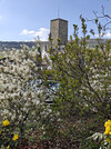 Från kyrkan klättrar vi tillbaka upp på vingårdarna och kan redan se ett av de kloster som grundades av det allestädes närvarande helgonet ovanför oss: benediktinerklostret, som naturligtvis bär namnet S:ta Hildegard.