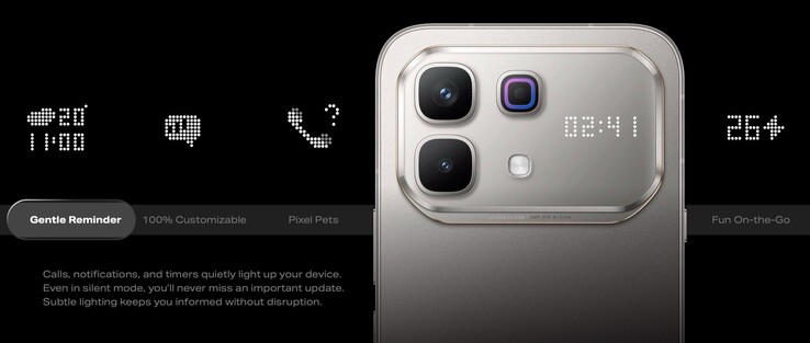 Höljet har också några unika element. För det första en programmerbar åtgärdsknapp som bland annat kan starta en AI-assistent eller öppna kameraappen. För det andra en punktmatrisdisplay i kameramodulen som kan indikera inkommande meddelanden, visa tiden eller visa ett virtuellt husdjur. Slutligen, en "Health Monitor" - det som ser ut som en kameraknapp är i själva verket en hjärtfrekvens- och SpO2-sensor. För att göra en mätning placerar användaren helt enkelt sitt finger på sensorn i 30 sekunder