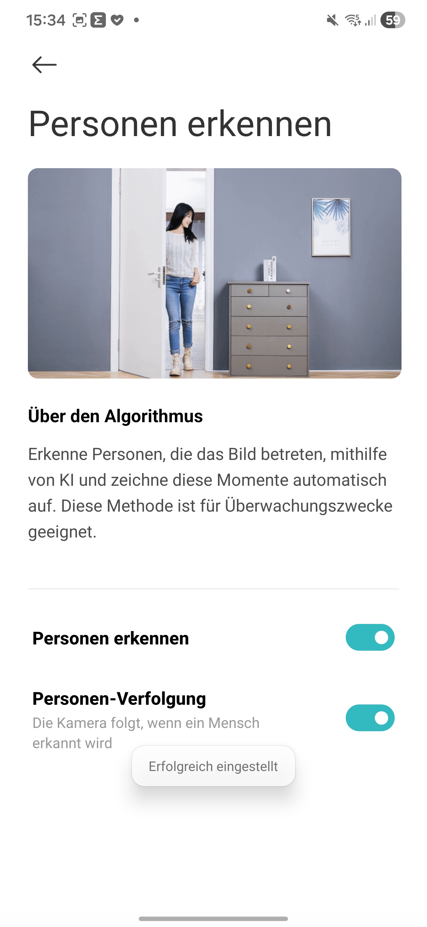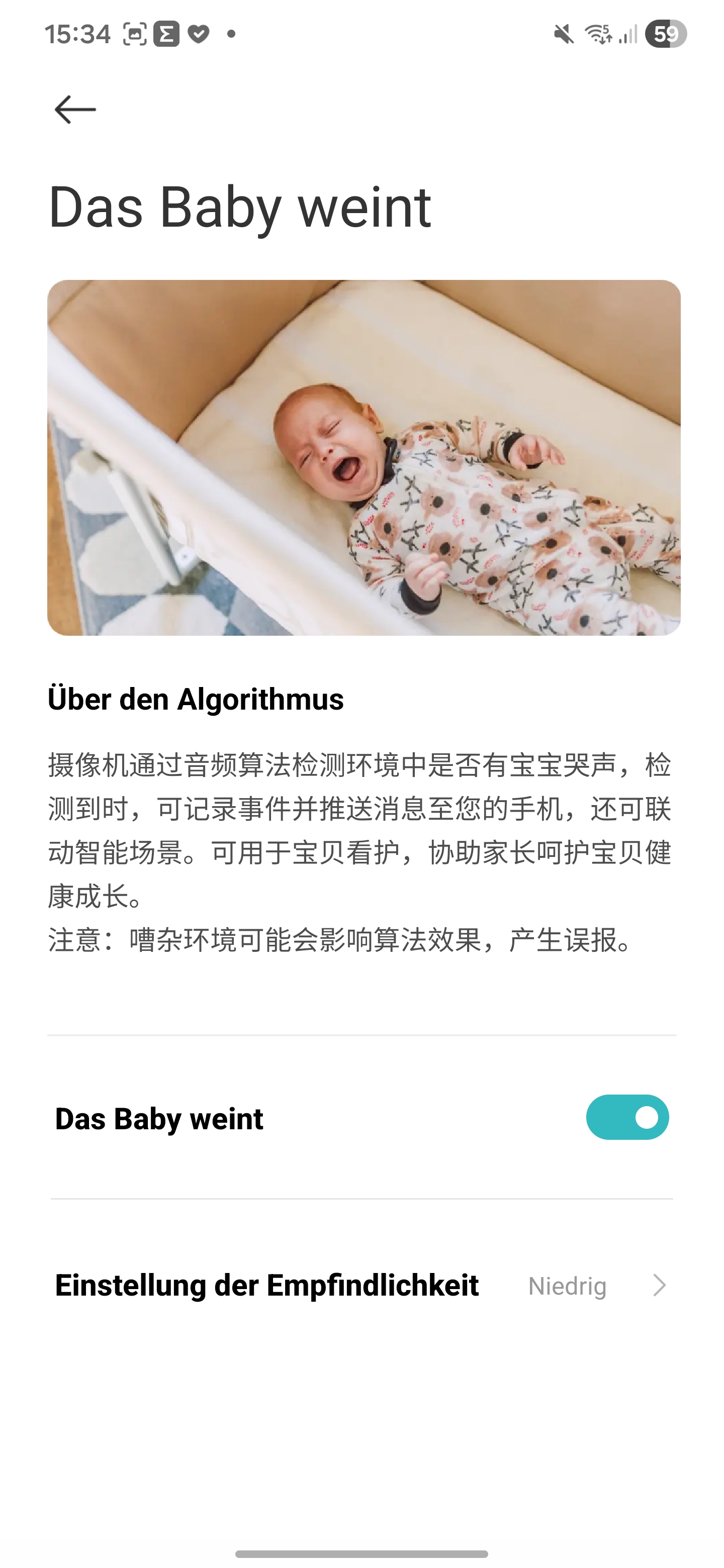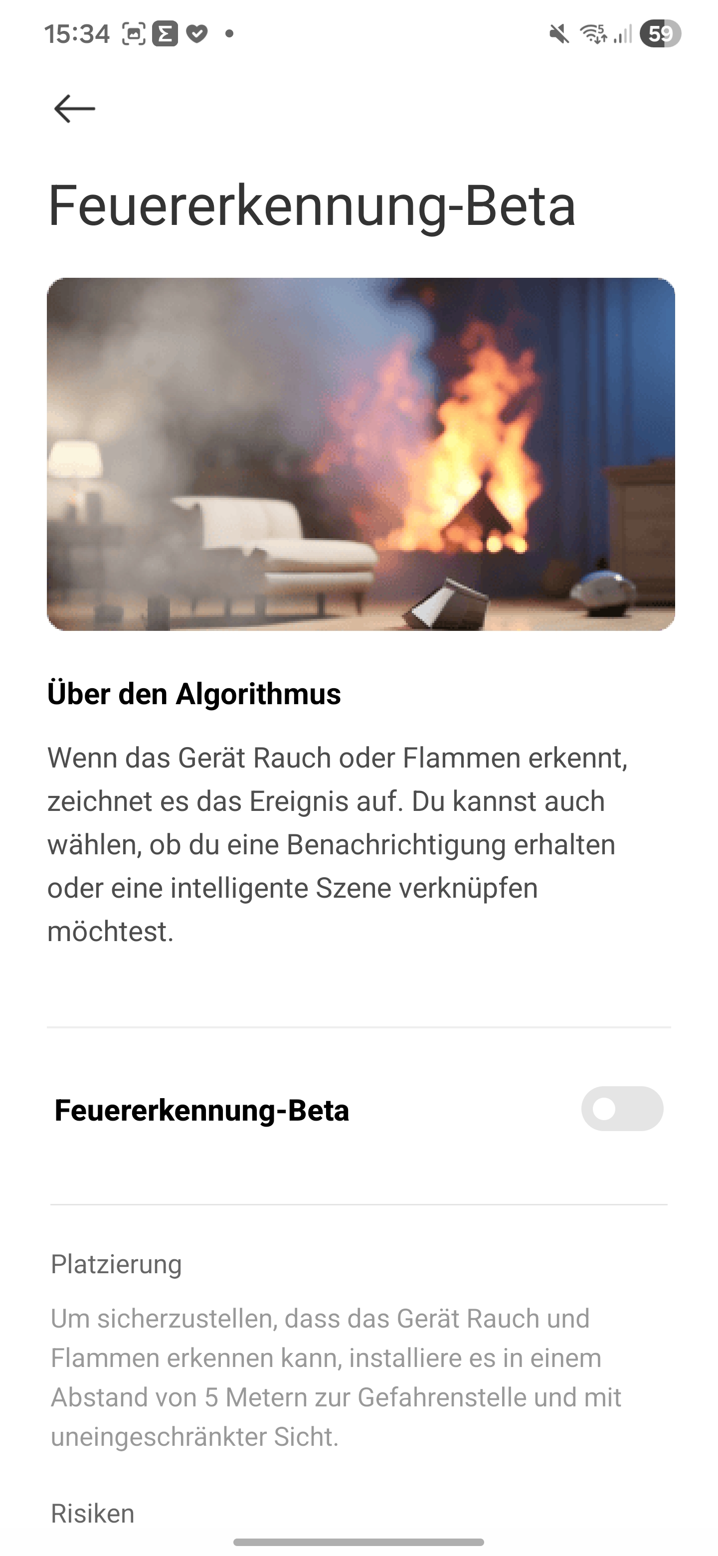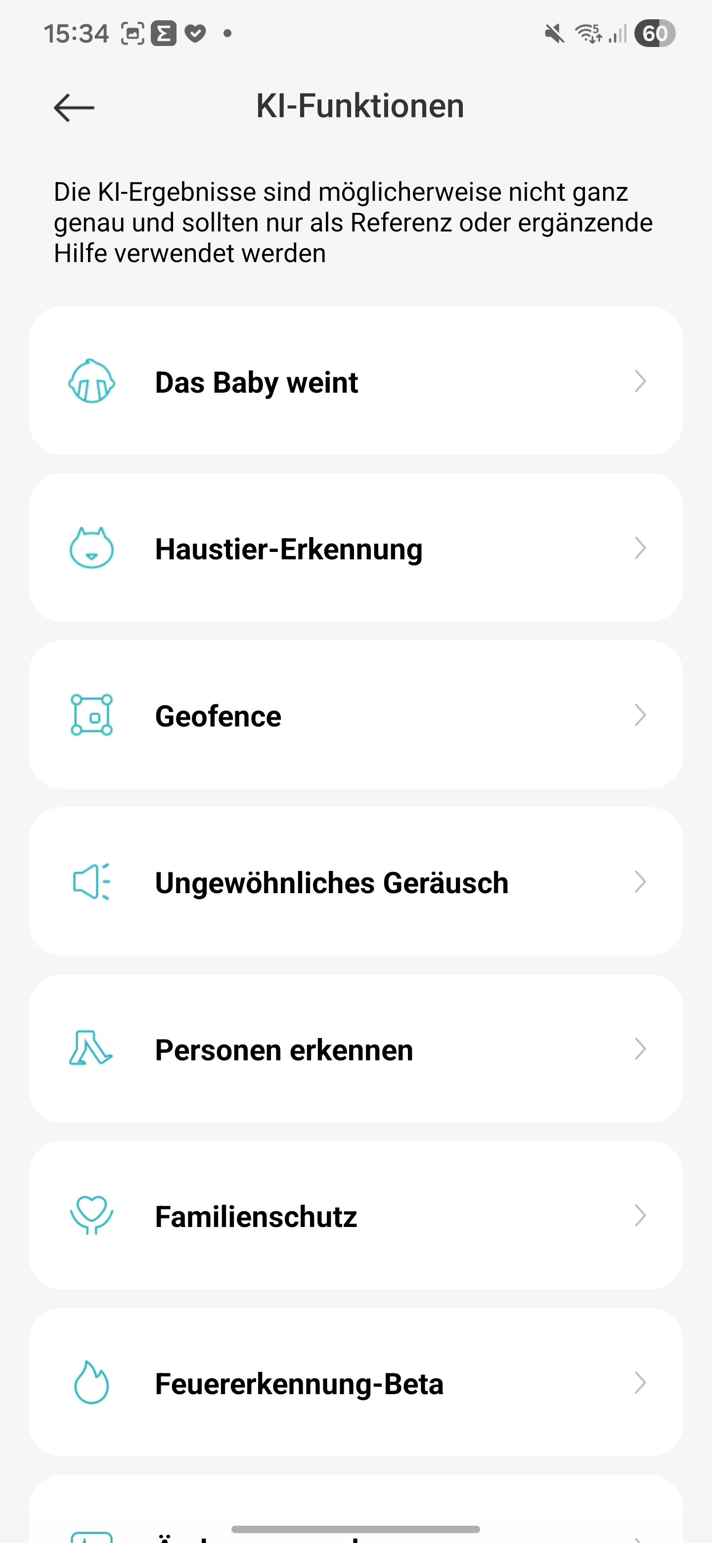 Kameran är utformad för att automatiskt skilja mellan människor och husdjur. Programvaran är också avsedd att upptäcka barnskrik och ovanliga ljud. I vårt test utlöste lekande barn varningar för både barnskrik och ovanliga ljud. Dessutom har delar av programvaran ännu inte översatts helt.